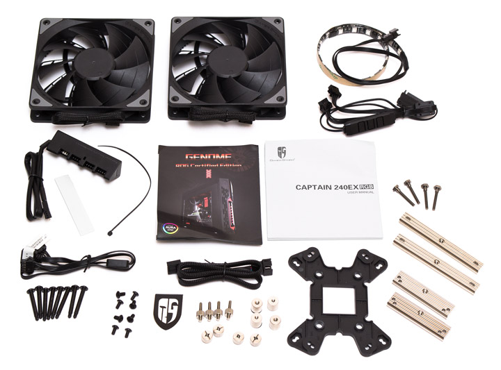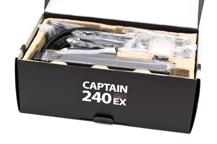 Внутри все традиционно упаковано в лоток из прессованного картона, как и во всех других необслуживаемых СВО. Радиатор, водоблок и детали из комплекта завернуты в индивидуальные полиэтиленовые пакеты, некоторые из которых даже подписаны.