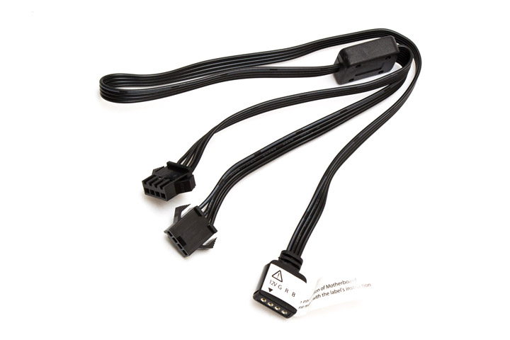 Для тех, кто успел обзавестись платой с 12VGRB-разъемом, в комплекте есть переходник длиной 400 мм. При подключении обязательно убедитесь что контакт 12 В попадает на 12 В на разъеме материнской платы, поскольку защиты от неправильного подключения тут нет.