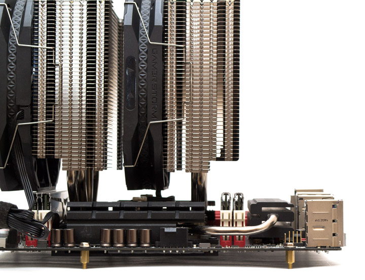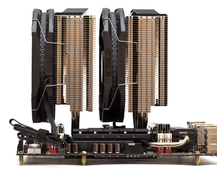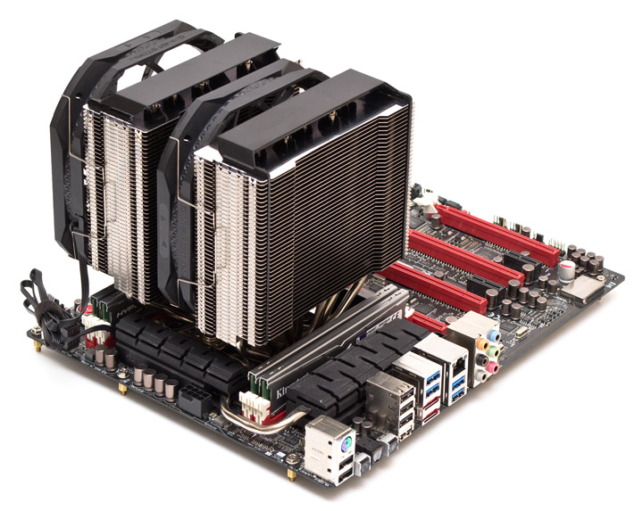 Кулер впечатляет своим размером даже на фоне немаленькой материнской платы.