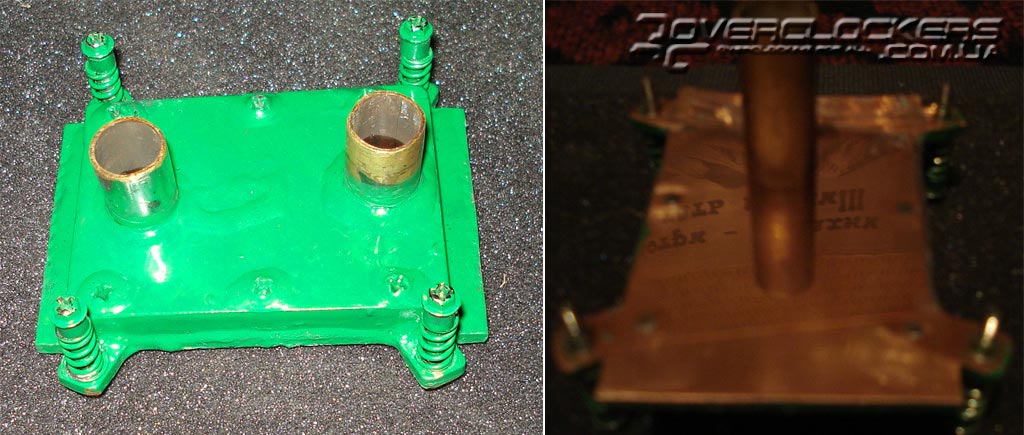 Потом на неё были припаяны две медные трубки для охлаждения не только чипа GPU, но и памяти. Вот что получилось из этого:
