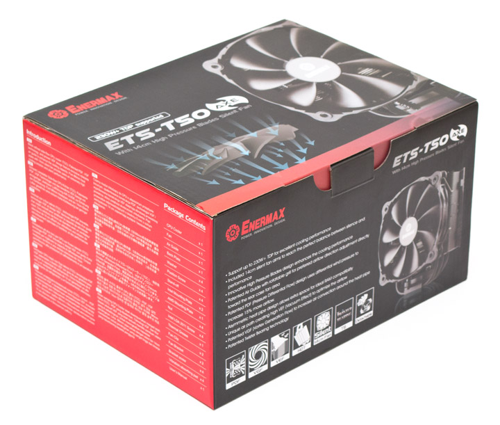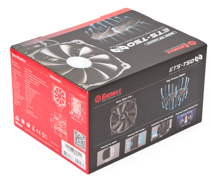 Упаковка кулера оформлена в красных и черных тонах. На коробке более чем достаточно информации как технического, так и маркетингового характера.