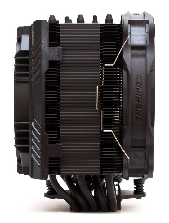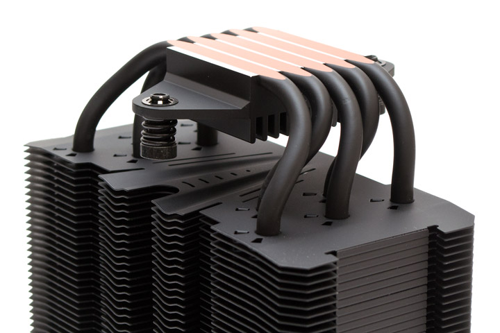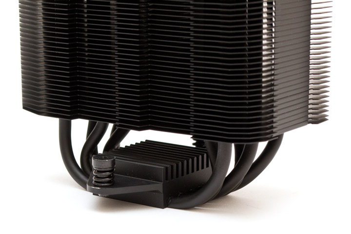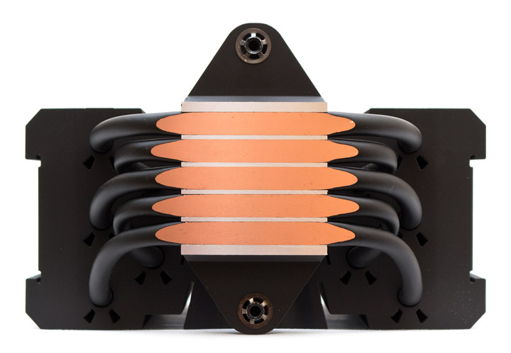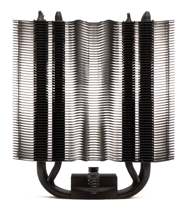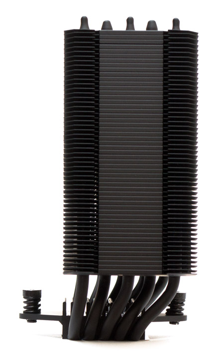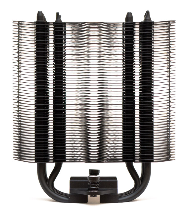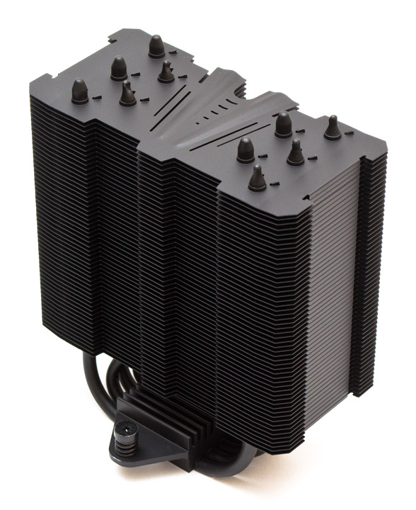 Окрашенный в матовый черный цвет алюминиевый радиатор выглядит все так же впечатляюще. В его основе лежит пять медных 6-мм тепловых трубок, расположенных U-образно.