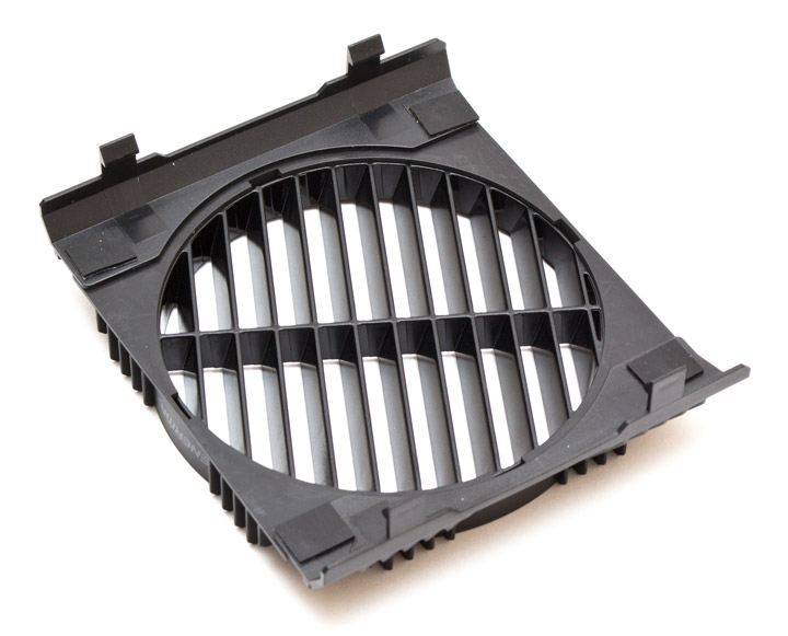 Дефлекторы в рамке наклонены под небольшим углом. Они поворачивают поток воздуха в нужном направлении, в сторону от кулера. Угол наклона пластин не регулируется.
