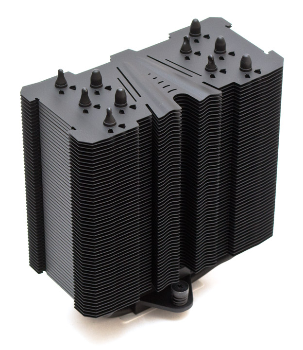 Количество ребер составляет 54 штуки, тепловые трубки разведены в два ряда, по две и по три в каждом соответственно. Зазор между радиаторными пластинами — 1,75 мм. Суммарная площадь рассеивания достигает 9550 см².
