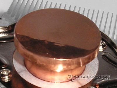 Основание кулера диаметром 33 мм отполировано до блеска, но идеально ровным его не назовешь.