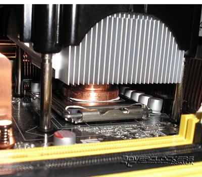 Установка Floston FCU999HCSAC на процессоры AMD такая же, как и установка большинства кулеров для данного типа CPU: зацепили крепеж за пластмассовую рамку и защелкнули клипсу. Единственно, что могут возникнуть проблемы с совместимостью, при близком расположении стандартных конденсаторов к крепежной рамке. В этом случае придется спиливать выступающую часть радиатора. Для процессоров с Socket 775 необходимо будет снять предустановленный крепеж на кулере и через специальные отверстия в кожухе пропустить винты с пружинами, вкрутив их в backplate, которая поставляется в комплекте. Пружины особой жесткостью не отличаются, и после сборки системы наблюдается небольшой люфт, аналогичный при использовании кулеров Zalman 9700/9500.