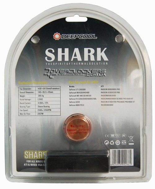 Кулер имеет форму полуокружности с фигурной крышкой-колпаком, внешний вид которой напоминает голову акулы, что и послужило основанием для грозного названия Shark.