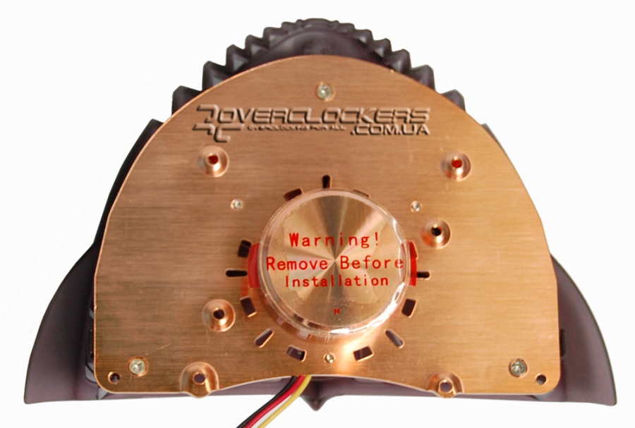 Радиатор выполнен из меди, толстое цилиндрическое основание возвышается над радиатором на полтора сантиметра. Вентилятор прикручен к радиатору и скрывается под пластиковым кожухом, в котором довольно таки мало прорезей, а следовательно, и приток воздуха немного ограничен.