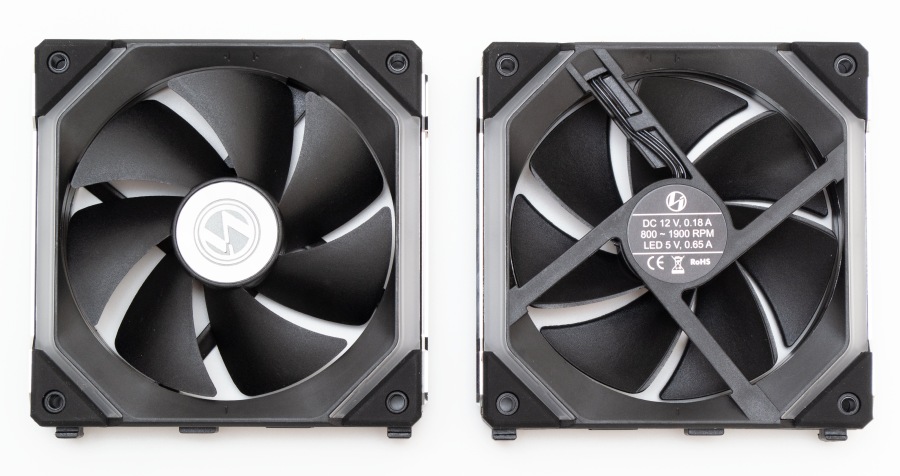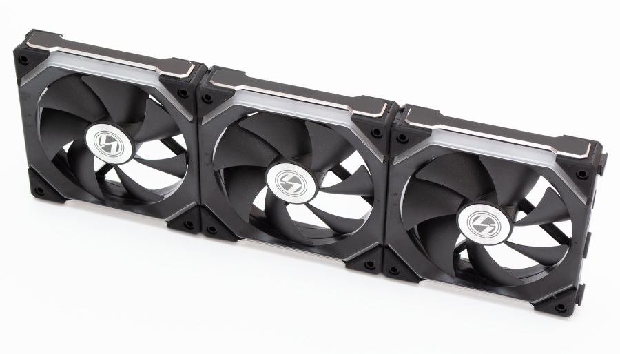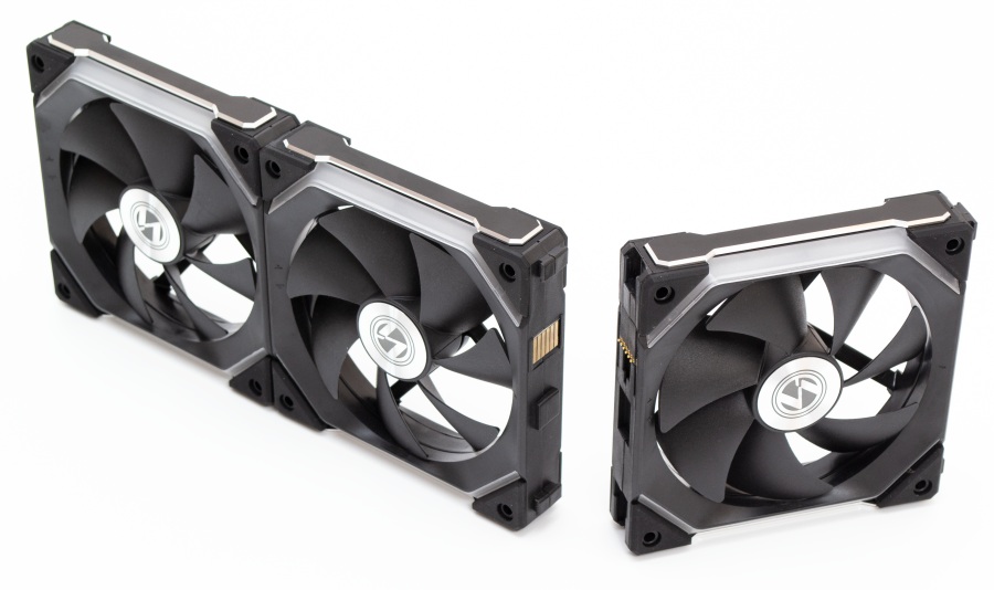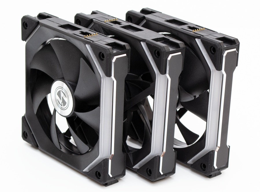Подсветка вентиляторов работает исключительно, если контроллер подключен к внутреннему USB разъему материнской платы. Уровень яркости высокий, отображение цветов корректное. 32 светодиода в каждом вентиляторе расположены в рамке по периметру и их свет виден как спереди, так и сзади.