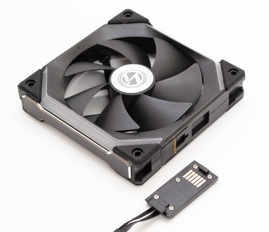 | Дополнительные особенности | Контроллер подсветки и питания вентиляторов, с поддержкой четырех раздельных линий и собственным ПО для управления скоростью пропеллеров и световыми эффектами. Вентиляторы соединяются последовательно, без проводов, до четырех штук в ряд. Кабели питания и подсветки съемные, один может запитать весь кластер. |