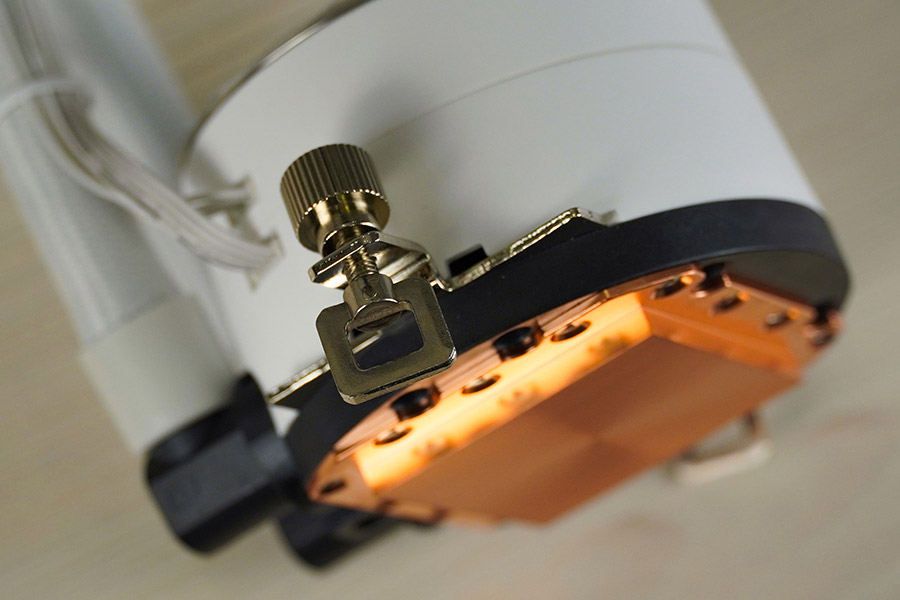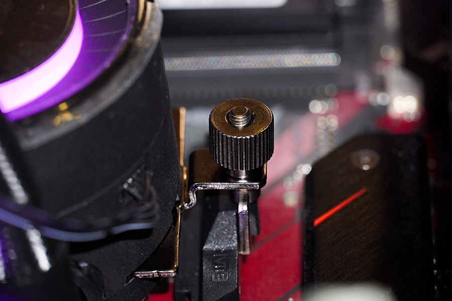 Для данного сокета стандартный крепеж снимать не нужно. Просто прикручиваем крепеж для АМ4/AM5, и полностью выкручиваем прижимные гайки, чтобы подставить скобы в их место на креплении, в противном случае будет очень сложно их надеть на крюки крепежа.