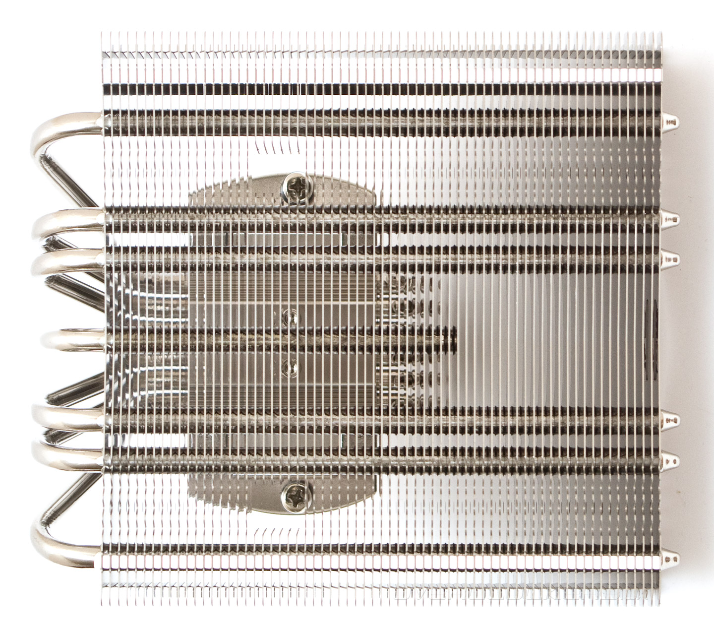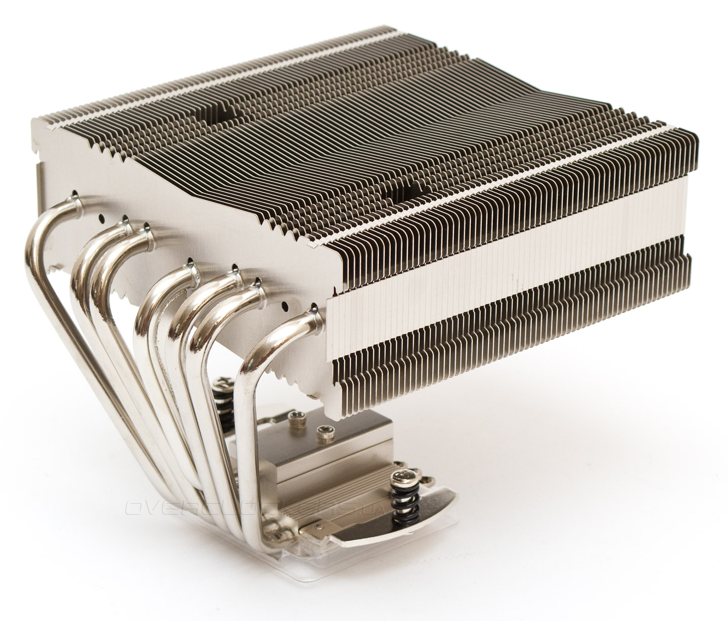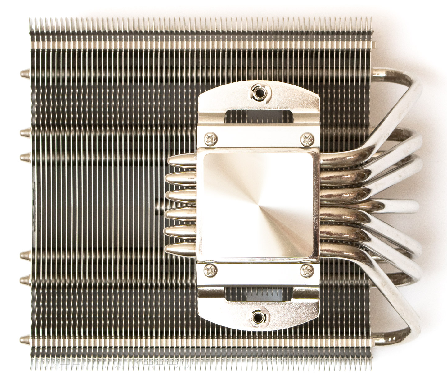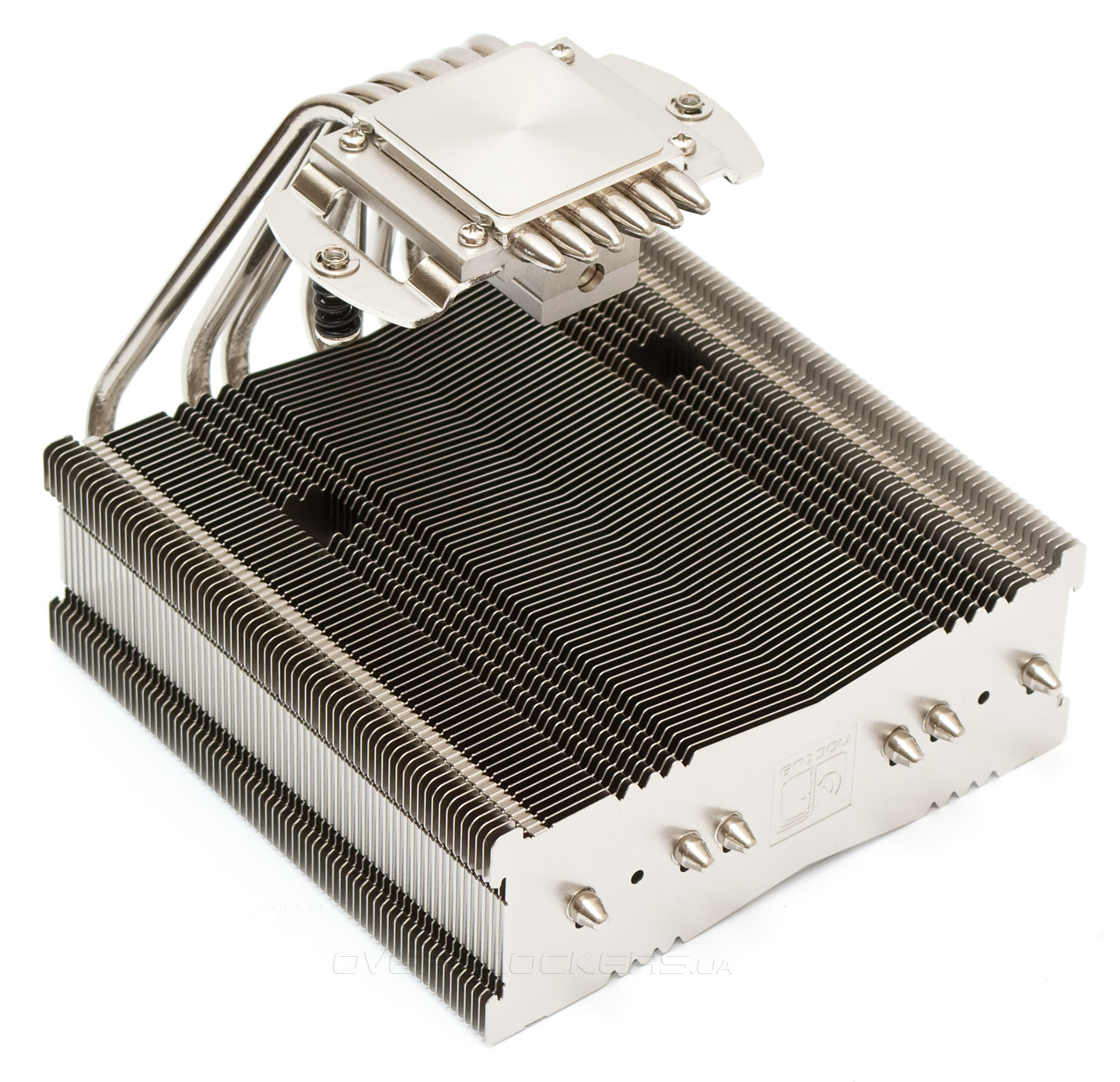 Основу радиатора по-прежнему составляют шесть 6-мм тепловых трубок, равномерно разведенных в стороны для увеличения площади теплоотдачи. 67 радиаторных пластин, толщиной 0,5 мм и расставленных с зазором в 2 мм создают суммарную площадь рассеивания тепла в 7500 см². Трубки никелированы и надежно припаяны к ребрам, что является уже стандартом производства для австрийской компании.