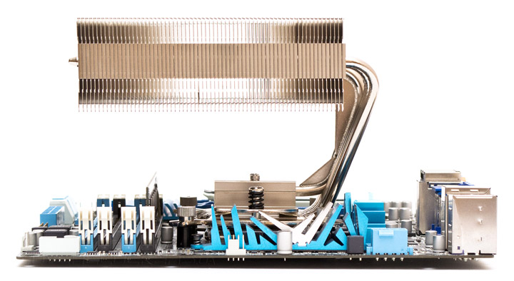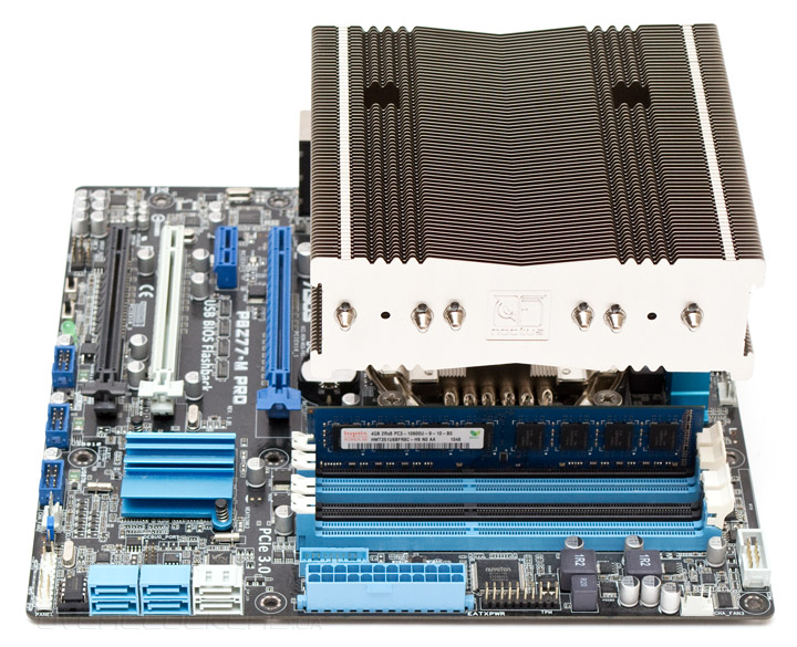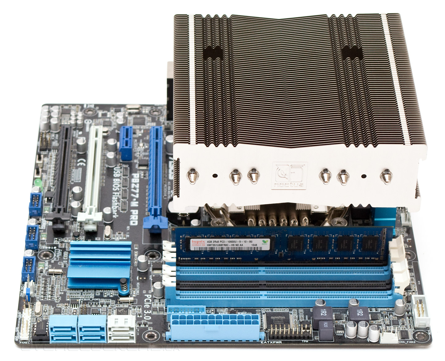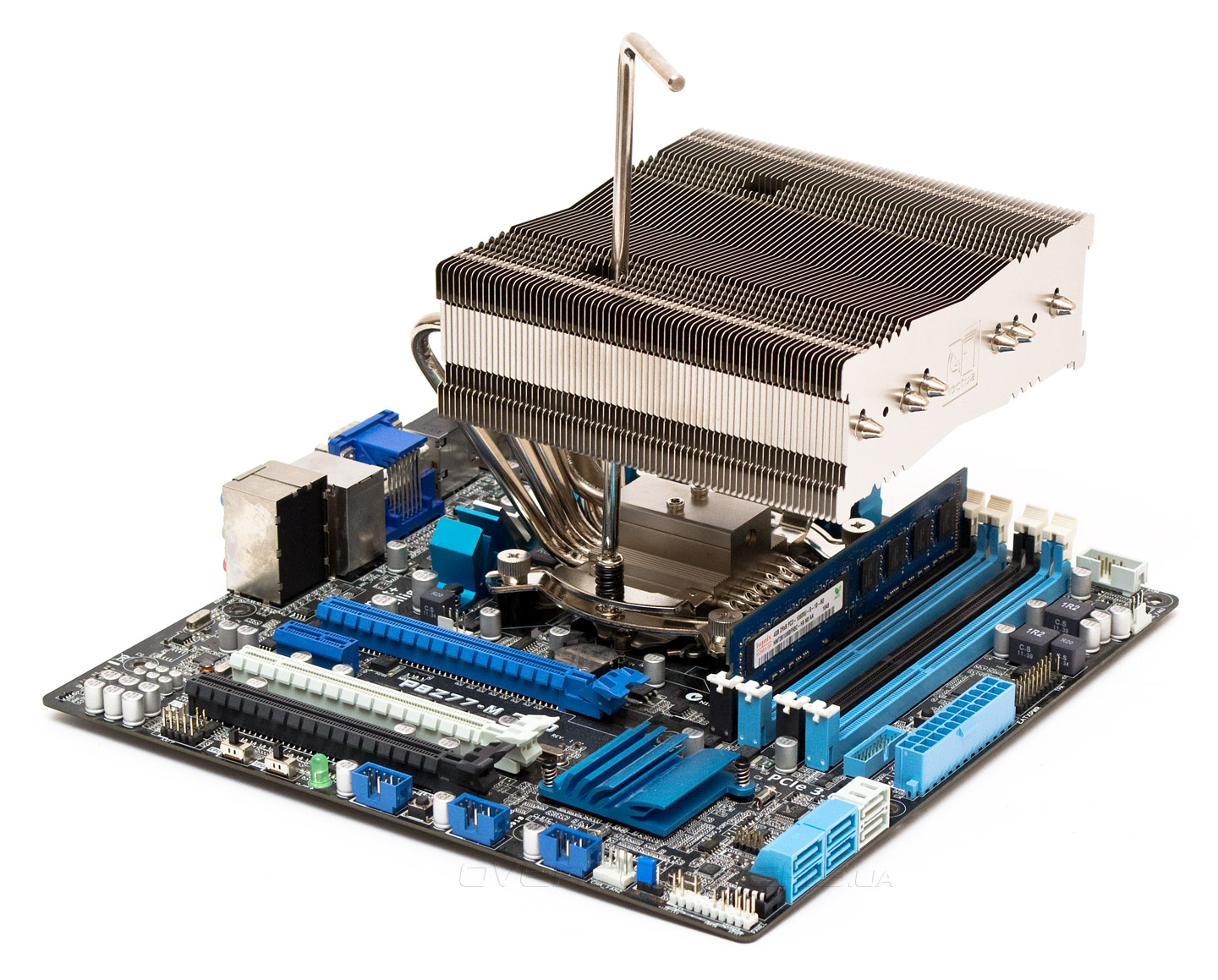 При ориентации радиатора концами тепловых трубок в сторону памяти, первый слот расширения PCI-E остается открытым, как и было задумано разработчиками кулера.