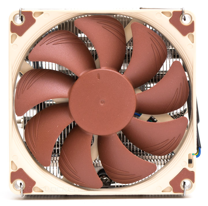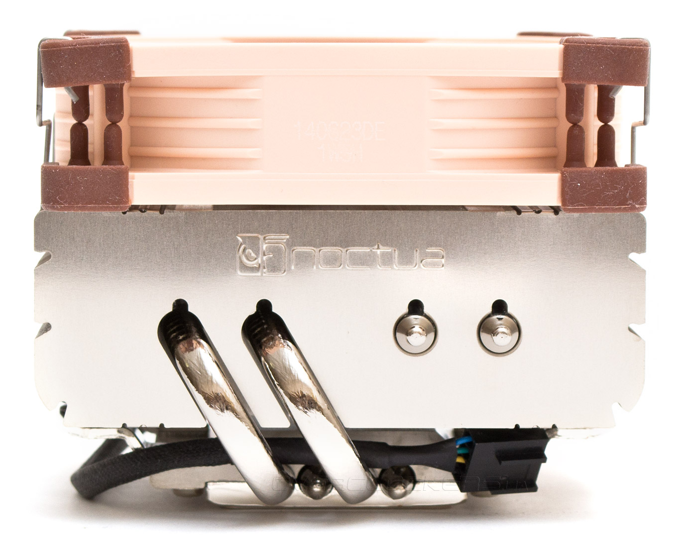 Основным требованием при проектировании Noctua NH-L9x65 было не превышение габаритов посадочного квадрата Intel — 95х95 мм, в целях совместимости с любыми Mini-ITX платами, где процессорный разъем расположен слишком близко к другим компонентам. И нужно сказать, что компании это удалось. Если смотреть сверху, то радиатор практически не видно за комплектным вентилятором. Другими словами, в корпусе его не будет заметно.