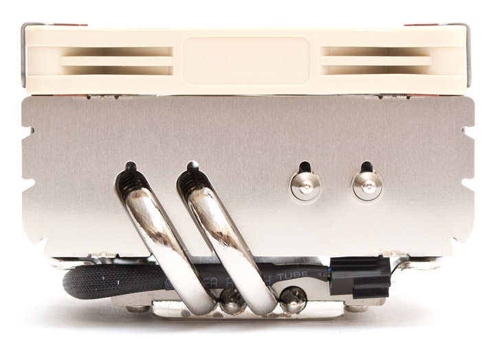 Основную роль в передаче тепла от процессора играют четыре испарительные трубки, которые выходят из основания и равномерно по С-образной траектории пересекают всю рабочую поверхность тела радиатора навстречу друг другу, по две с каждой стороны. Так обеспечивается оптимальное распределение тепла во всем ребрам.