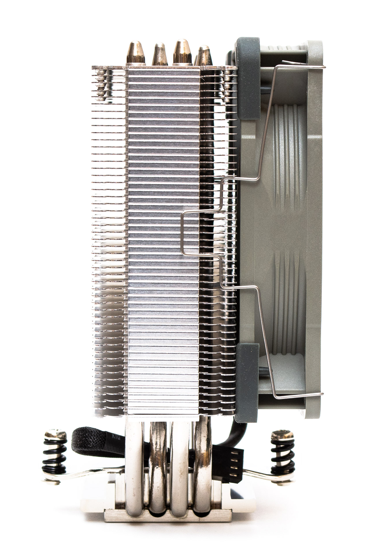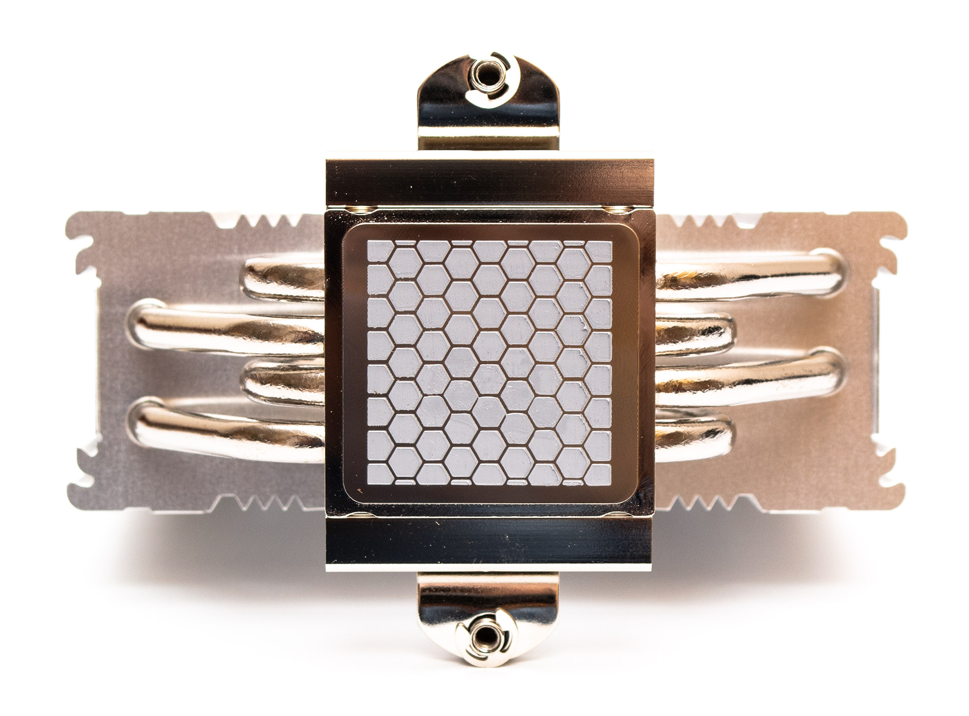 Радиатор состоит из 50 пластин, расположенных с просветом в 1,8 мм и четырех тепловых трубок диаметром 6 мм, равномерно распределенных в форме буквы U на четыре ряда по две с каждой стороны.