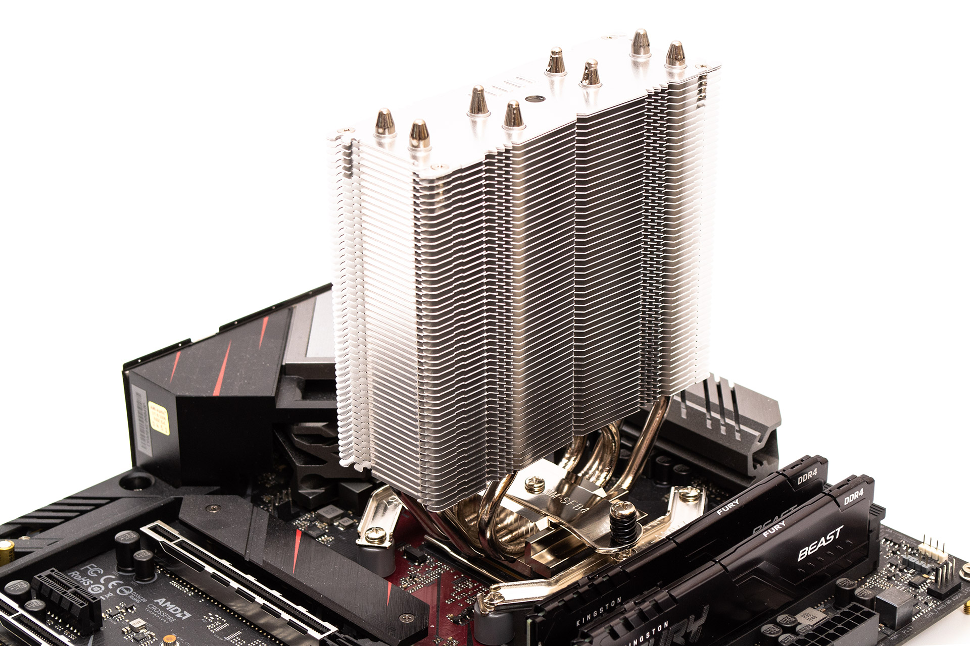 Это простая конструкция на одну секцию. Все тепловые трубки, ребра и подошва для предотвращения коррозии покрыты слоем никеля. Общая площадь рассеивания тепла составляет 5625 см².