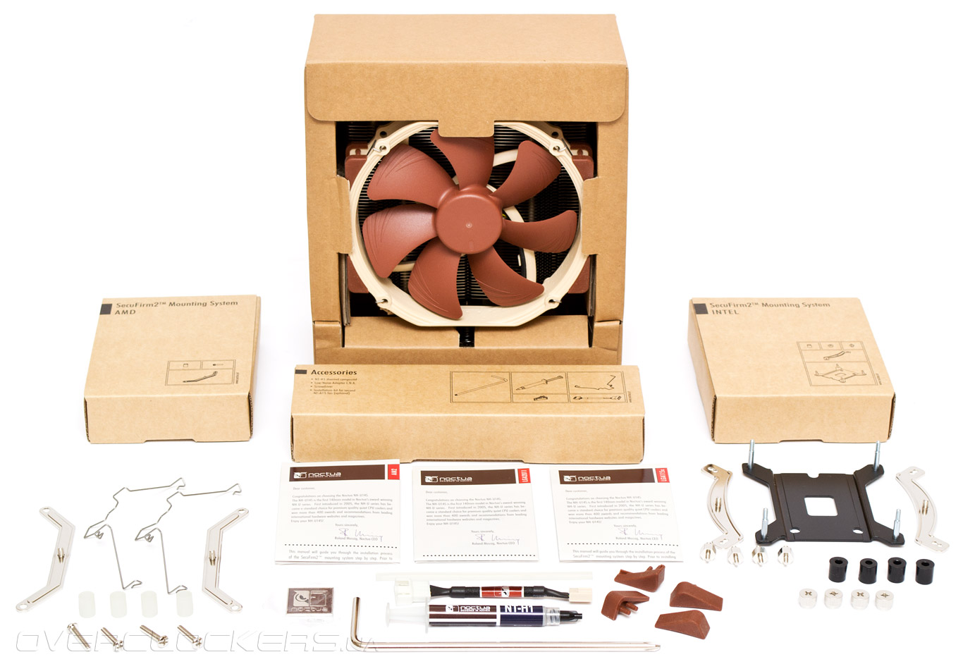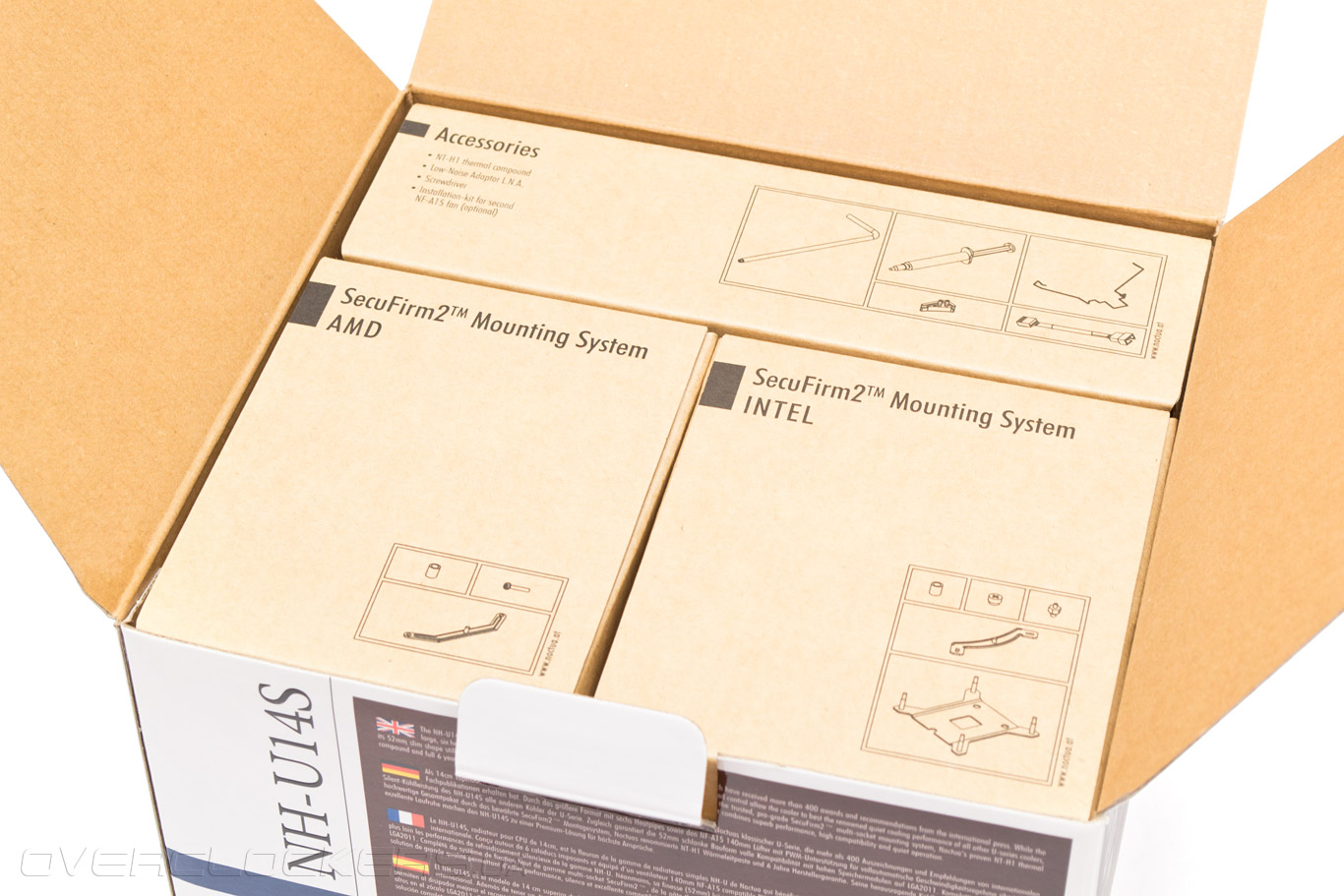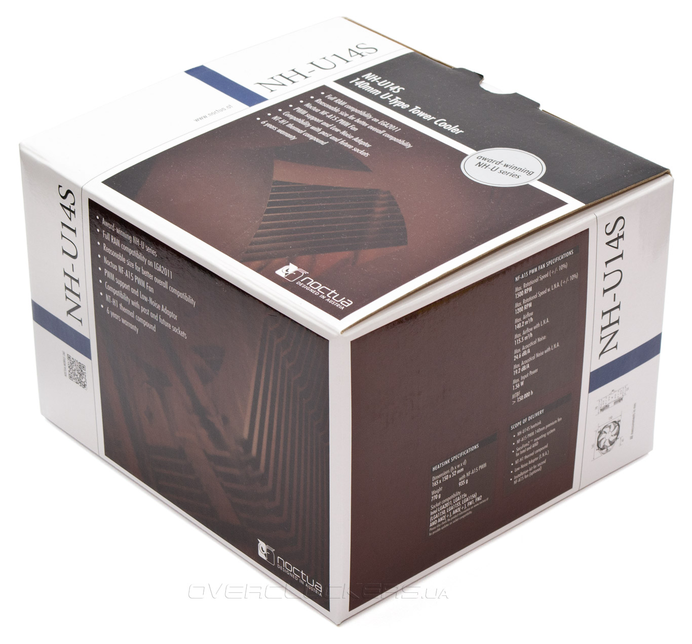 Noctua NH-U14S упакован в традиционную для компании коричнево-белую коробку. Описывать достоинства и информативность полиграфии нет смысла, ведь они находятся на традиционно высоком уровне. Перейдем сразу к содержимому.