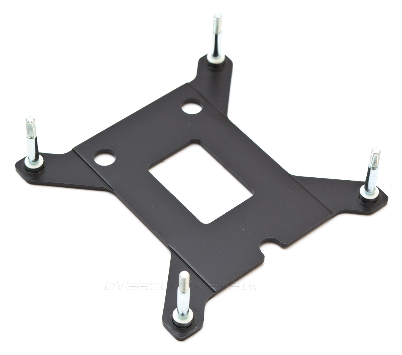 О монтаже кулера я расскажу на примере разъема Intel LGA1155. Для начала вставляем усилительную пластину, которая может иметь только один вариант ориентации, в нужные отверстия на обратной стороне материнской платы.