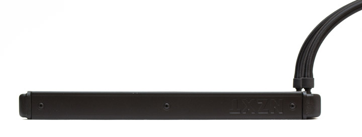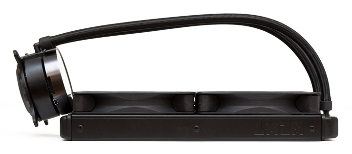Во внешности NZXT Kraken X62 нет ничего особо уникального, если не считать дизайна его водоблока, о котором мы поговорим чуть позже. Помпа связана с радиатором 400-мм довольно гибкими резиновыми шлангами, укрепленными плотной нейлоновой оплеткой. Внешний диаметр шлангов составляет 11 мм, внутренний, если судить по толщине фиттингов — около 6 мм.