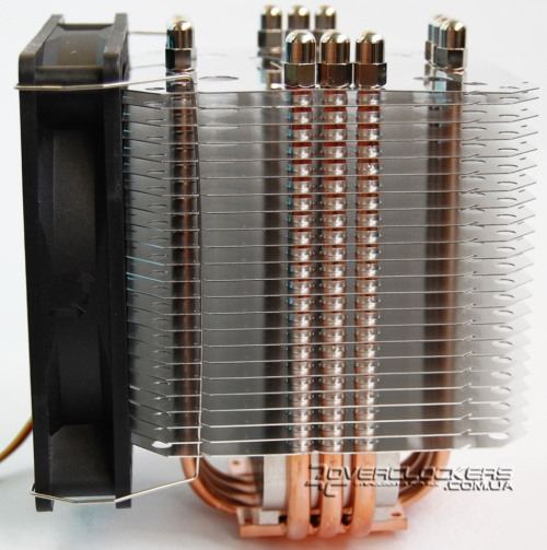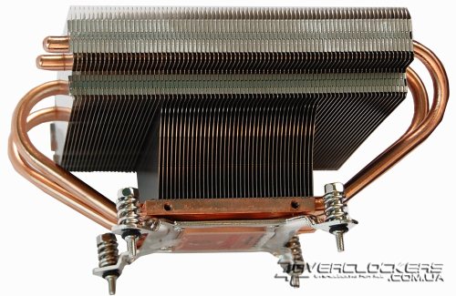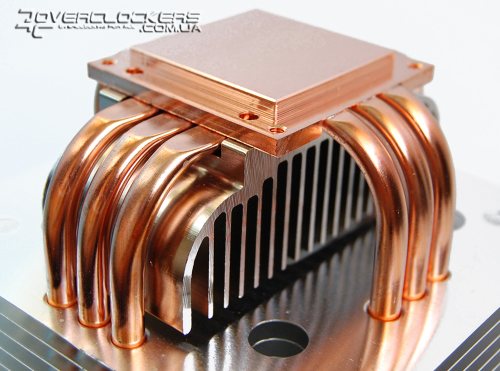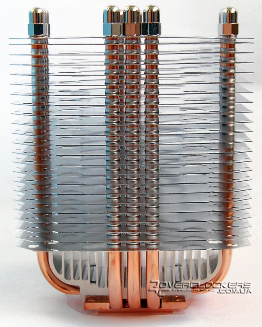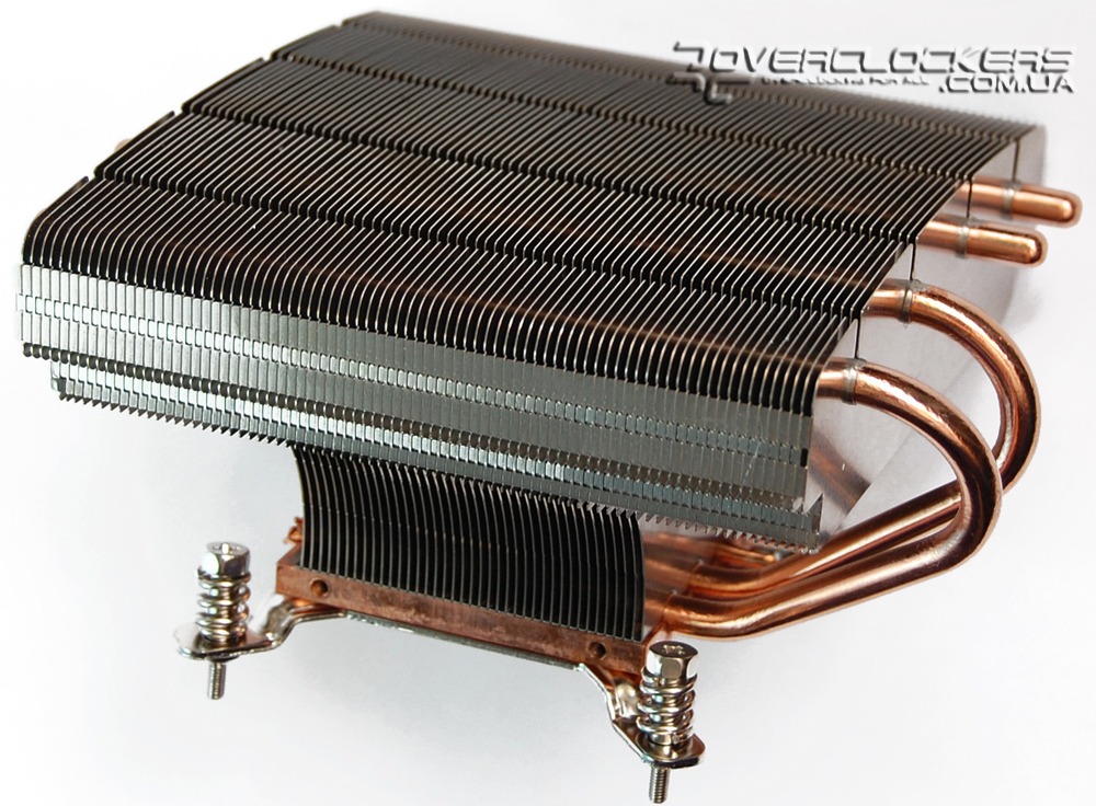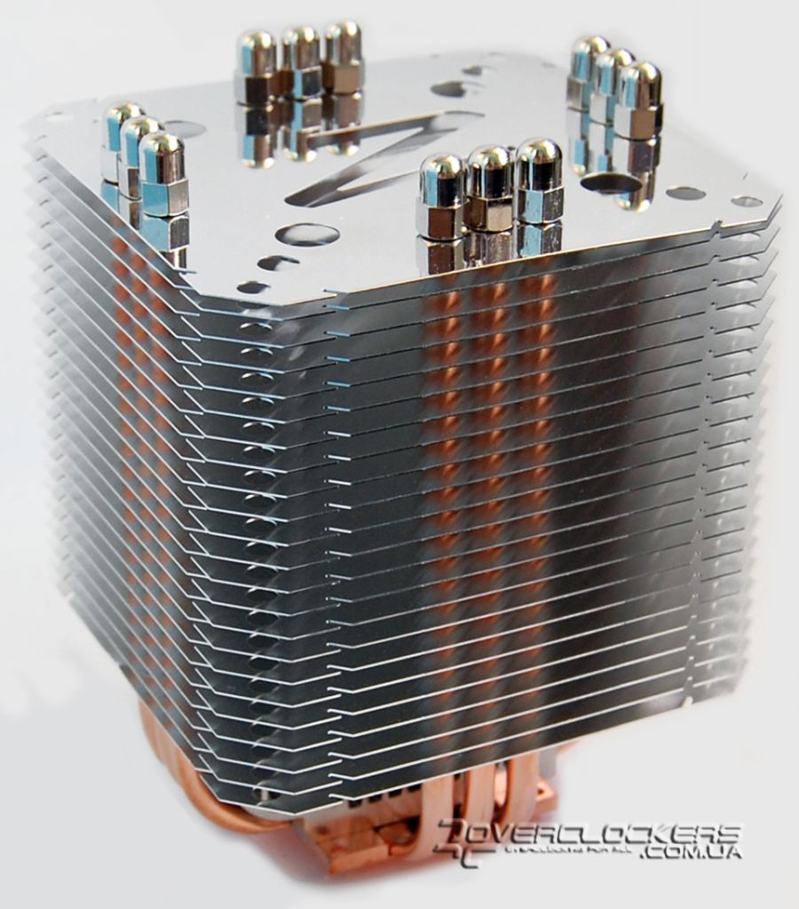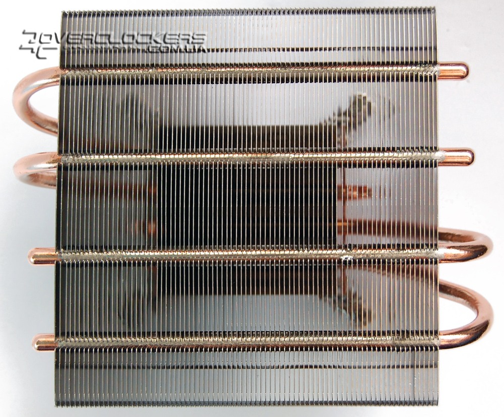 Четыре тепловые трубки диаметром 6 мм выходят из основания и, изгибаясь, пронизывают ребра радиатора, который состоит из 71 алюминиевой пластины с очень близким расположением друг к другу. Ребра имеют загнутые края в верхней части, что придает больше жесткости конструкции и создает направленный нисходящий воздушный поток.