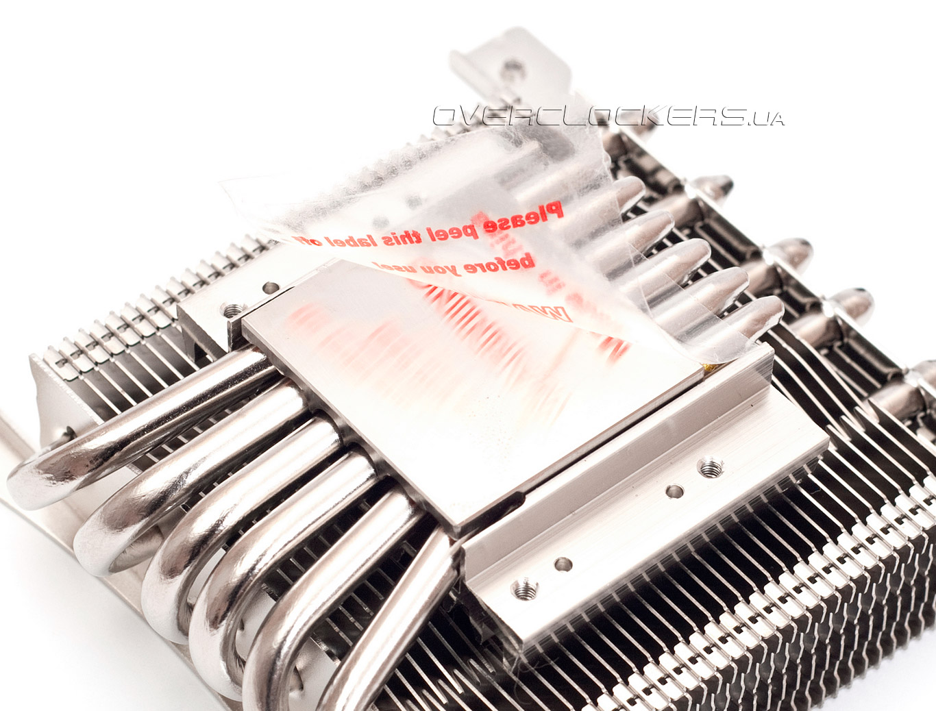 Для предотвращения повреждения основания кулера во время транспортировки, оно защищено специальной наклейкой, которую необходимо снять непосредственно перед самой установкой.