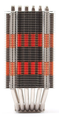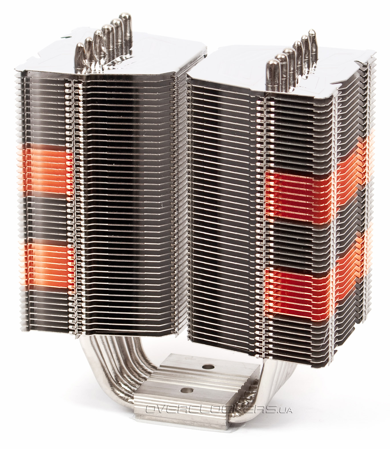 Конструкция кулера практически не отличается от таковой у Megahalems. Основное нововведение — небольшие медные вставки в ребрах радиатора. Насколько они повысят эффективность охлаждения, нам ещё предстоит выяснить, а пока можно сказать с уверенностью, что смотрится такое решение очень красиво.
