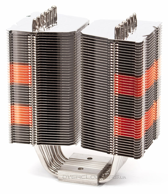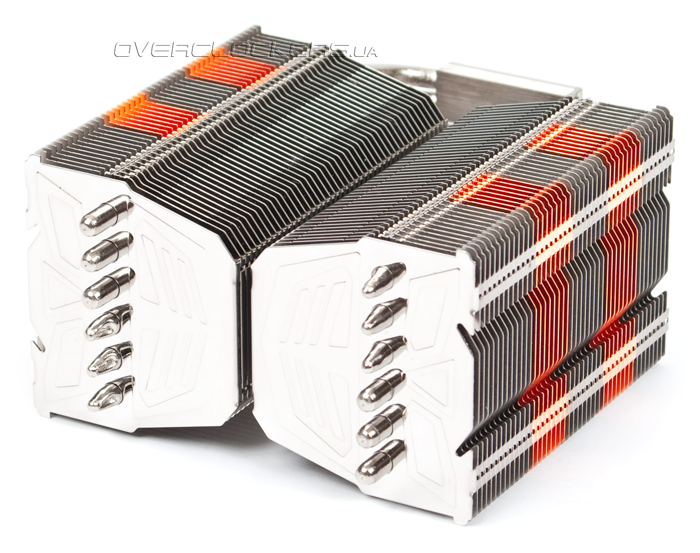 Охладитель представляет собой классическую башенную конструкцию с шестью тепловыми трубками, пронизывающими медное основание. На трубки нанизаны 45 алюминиевых пластин с медными вставками по бокам. Вся конструкция, за исключением вставок, никелирована. Тепловые трубки расположены в один ряд. Размеры конструкции 130 х 74 х 159 мм при весе 820 грамм.