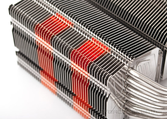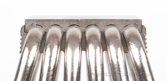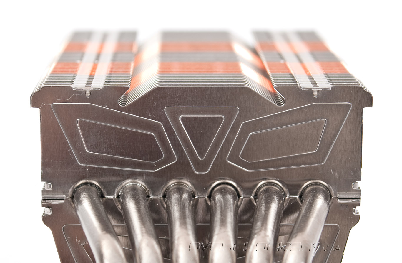 Медные вставки состоят из четырёх небольших секций по восемь пластин. Но фоне общей площади рассеивания радиатора эти вставки смотрятся очень незначительно. Поэтому можно предположить, что медь является в большей степени маркетинговым ходом, чем полезным инженерным решением.