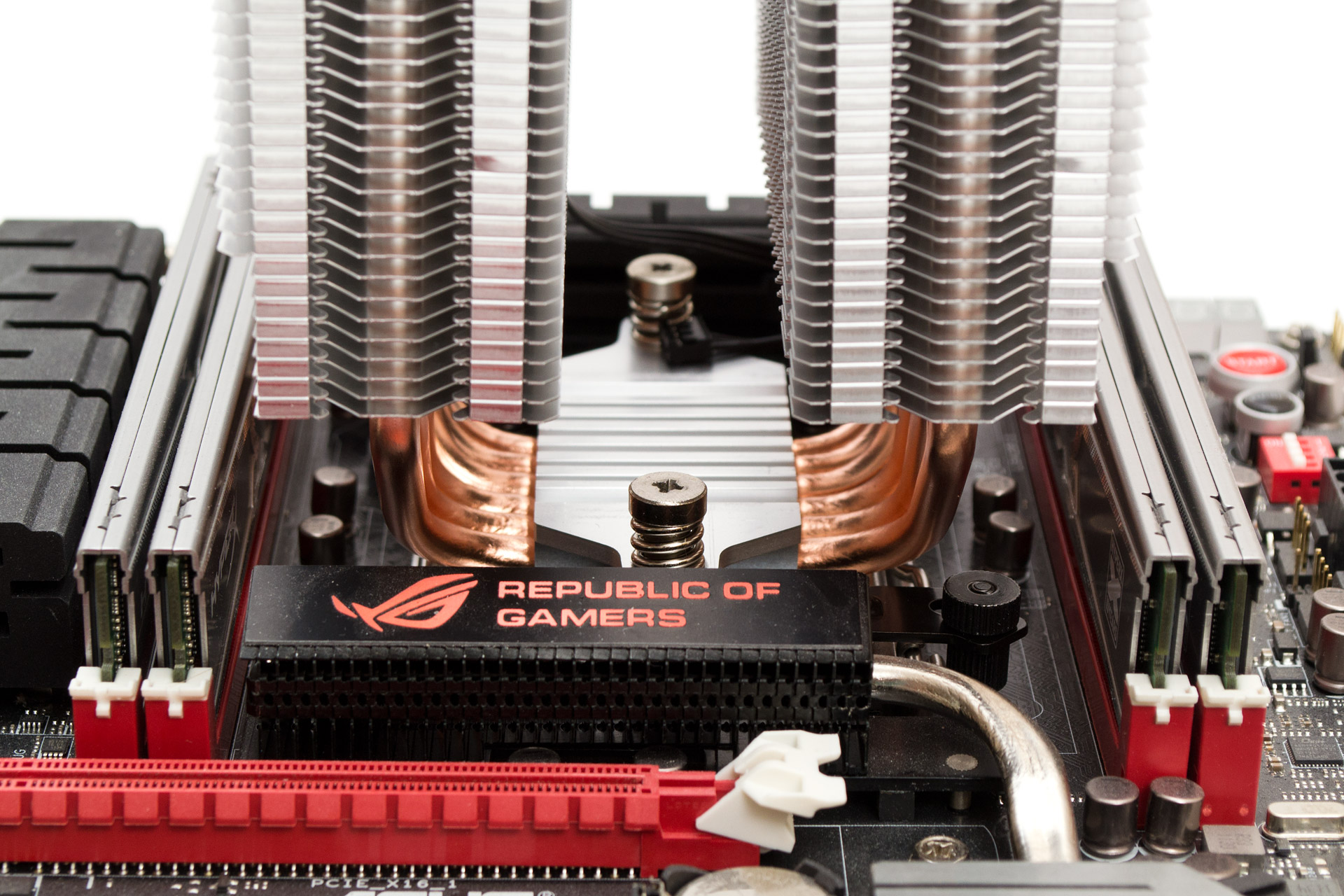 Конфликтов с первым слотом PCI-E нет никаких. В зазор между ним и кулером даже поместится палец, если нужно нажать на защелку слота.