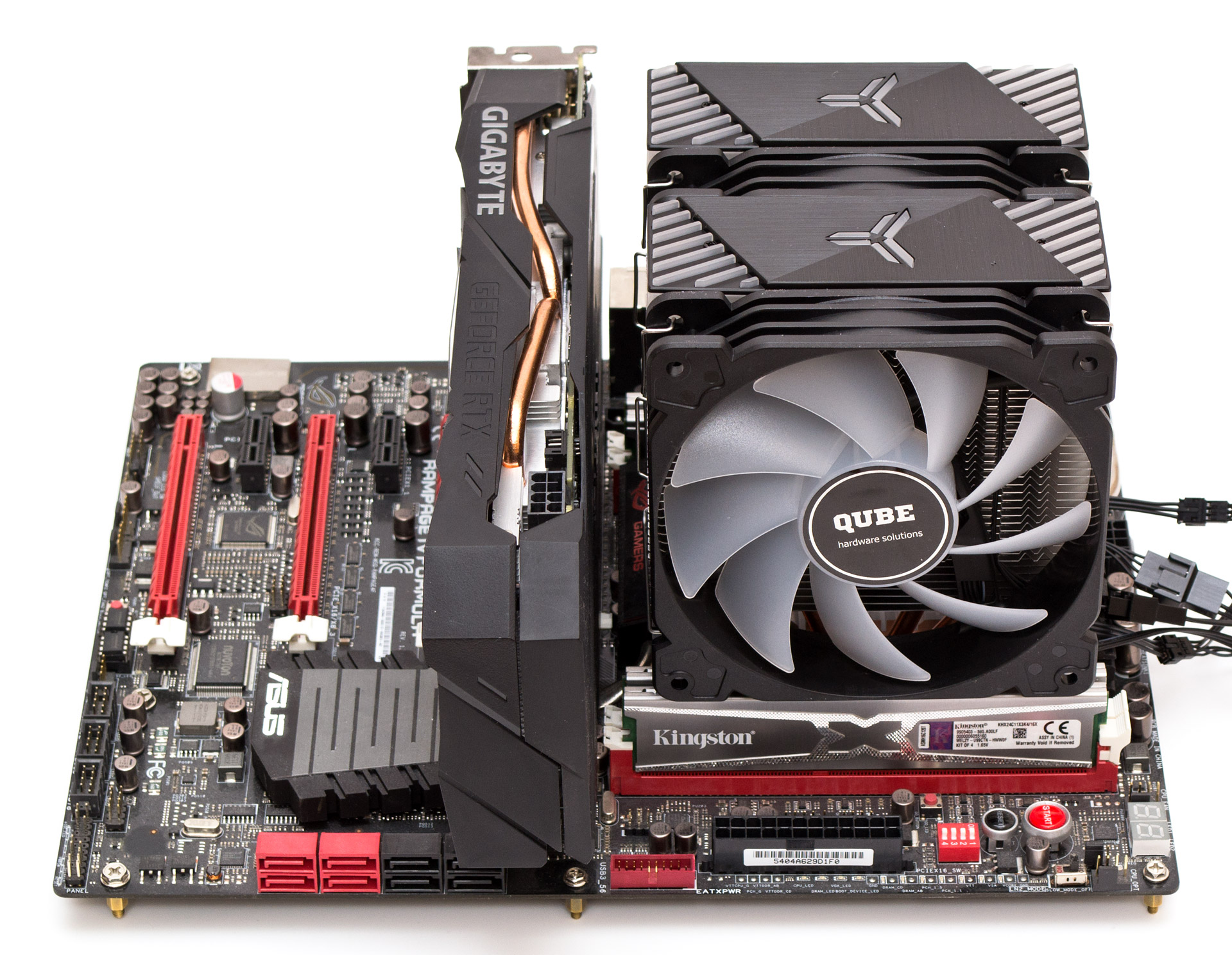 Для тестирования эффективности кулера Qube QB-OL2000GT использовался стенд на базе платформы Intel LGA 2011 в следующей конфигурации: