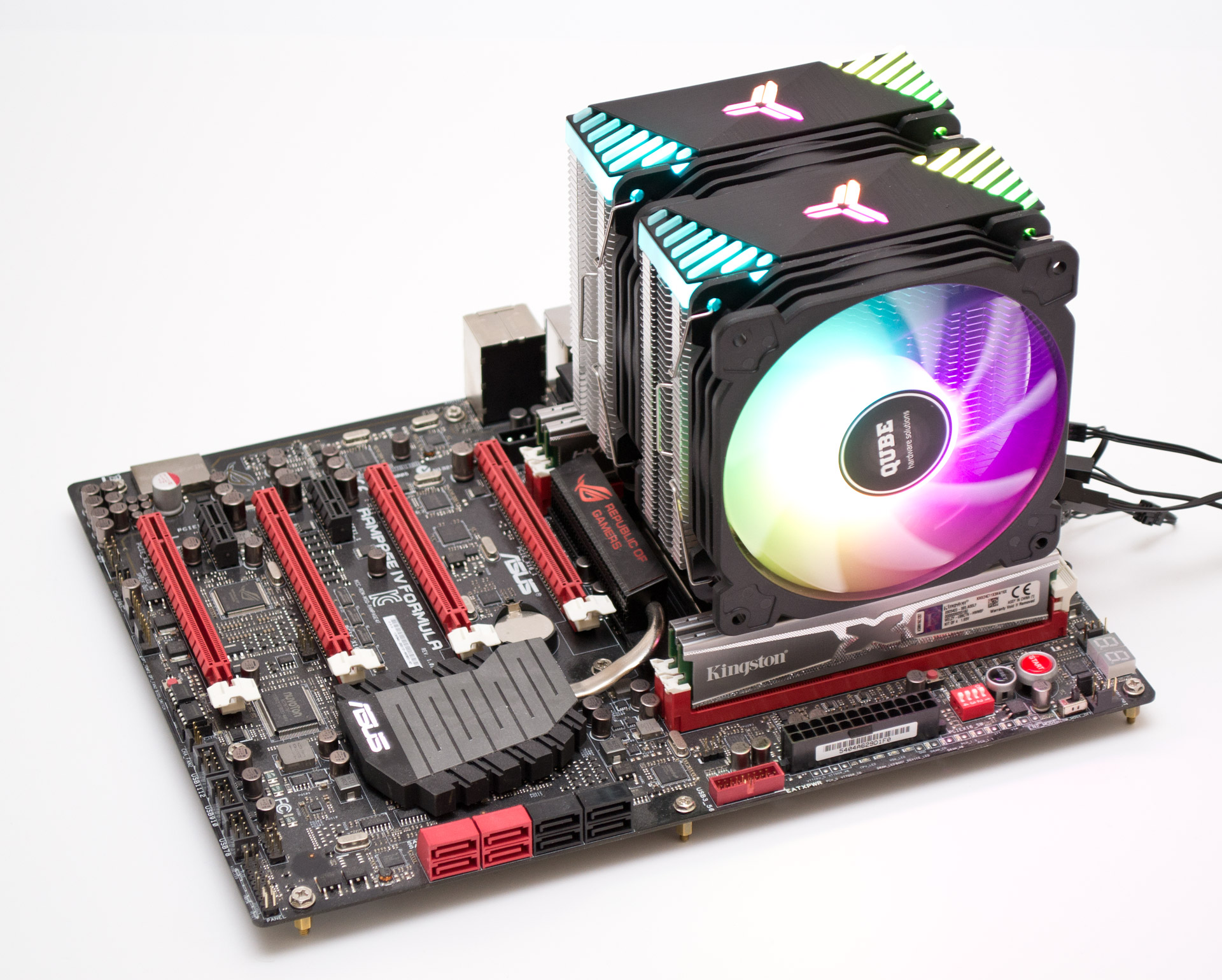 Qube QB-OL2000GT имеет шесть тепловых трубок прямого контакта и потому является отличным бюджетным вариантом для охлаждения процессоров с крупной крышкой, например всех серий AMD и Intel LGA 2066 (и им подобных). Особенно, если в придачу к эффективности еще требуется качественная подсветка. При использовании охладителя с процессорами с меньшей площадью теплораспределительной крышки его эффективность может оказаться ниже.