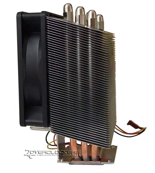 В основе четыре медные тепловые трубки, на которых тесно располагаются многочисленные пластины, окрашенные в золотистый цвет, что придает необычный и оригинальный вид радиатору. Несмотря на приличную высоту и объем, масса конструкции всего 590 грамм, что для таких габаритов немного. Вентилятор крепится прямо к радиатору, цепляясь скобами за выступы в ребрах.