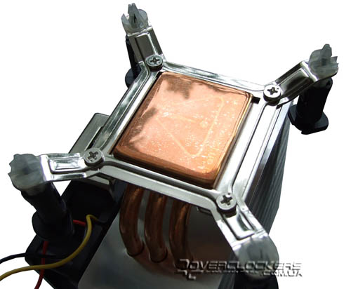Медное основание имеет идеальную полировку. На нашем образце, правда не самом новом и уже использовавшимся некоторое время, заметен отпечаток крышки процессора.