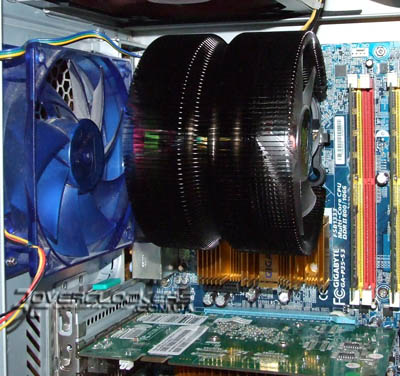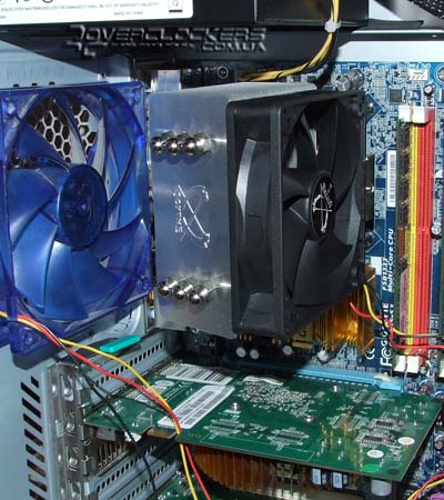 Все тесты проводились в закрытом корпусе. На задней стенке расположен низкооборотистый вентилятор Glasial Tech Silent Blade. На вдув работают два вентилятора диаметром 92 мм, включенные на 5В. Конструкция Chieftec CH-01-B такова, что эти вентиляторы расположены на боковой стенке. Также напротив процессора расположены вентиляционные отверстия.