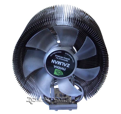 Конструкция кулеров Zalman 9-й серии отличается необычной компоновкой. Тепловые трубки изогнуты в виде восьмерок, нанизанные на них ребра радиатора образуют цилиндрическую форму. Трубки и радиатор полностью выполнены из меди. Внешне смотрится очень солидно. Плюс к этому, на каждой пластине выштамповано название компании. В скромности Zalman не упрекнуть, которая постаралась сделать максимально привлекательный аксессуар.