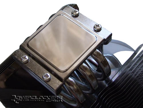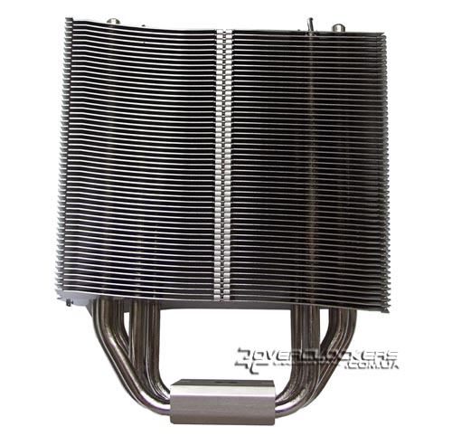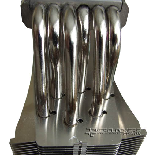 Шесть тепловых трубок проходят через медное основание. Расположены они не в один ряд, а со смещением относительно друг друга, образуя форму эллипса. На них тесно расположены алюминиевые пластины, которые имеют дополнительные перфорированные отверстия.