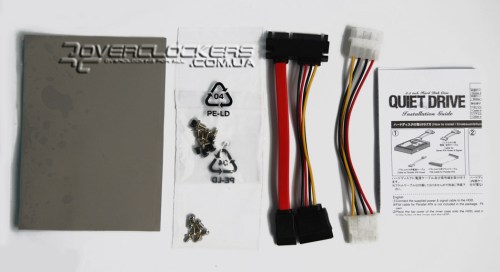 В комплекте идут переходники-удлинители разъемов SATA, удлинитель Molex, набор винтиков, две термопрокладки и инструкция.