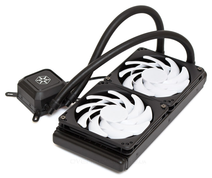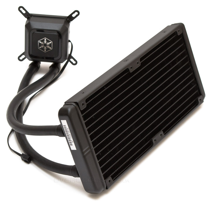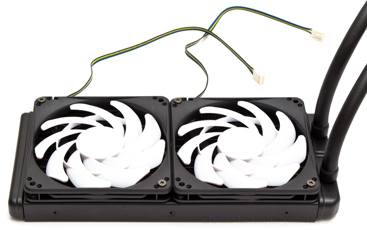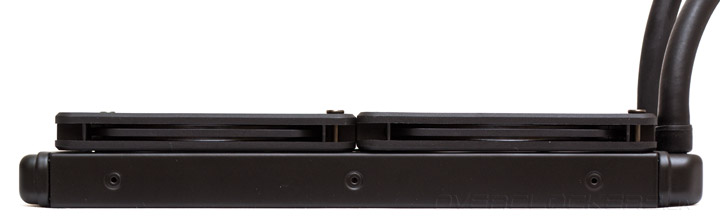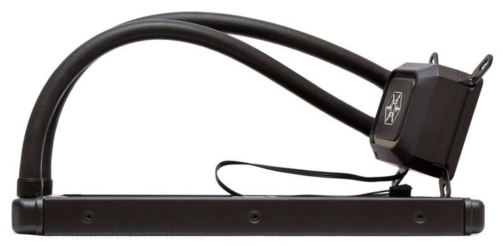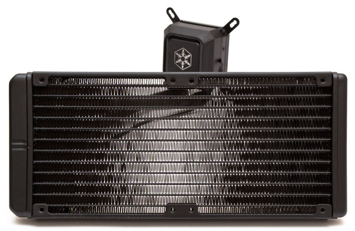 Алюминиевый радиатор полностью покрашен в черный цвет. В длину он имеет 273 мм, а в ширину — 120 мм. На нем есть два комплекта совмещенный вплотную винтовых посадочных мест под 120-мм вентиляторы. Структурно, радиатор состоит из 14 продольных водяных каналов, между которыми впаяно множество ребер ленточного типа. Зазор между ними составляет до 1,4 мм в самом широком месте. Суммарная площадь рассеивания тепла достигает приблизительно 6500 см².