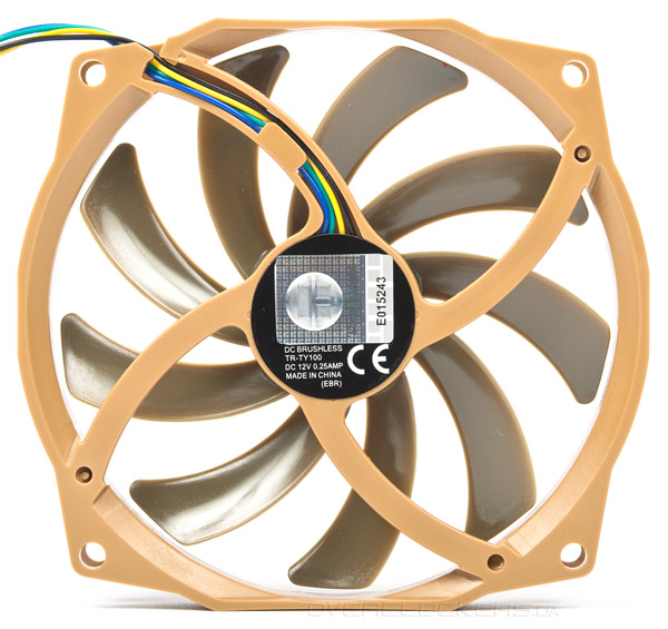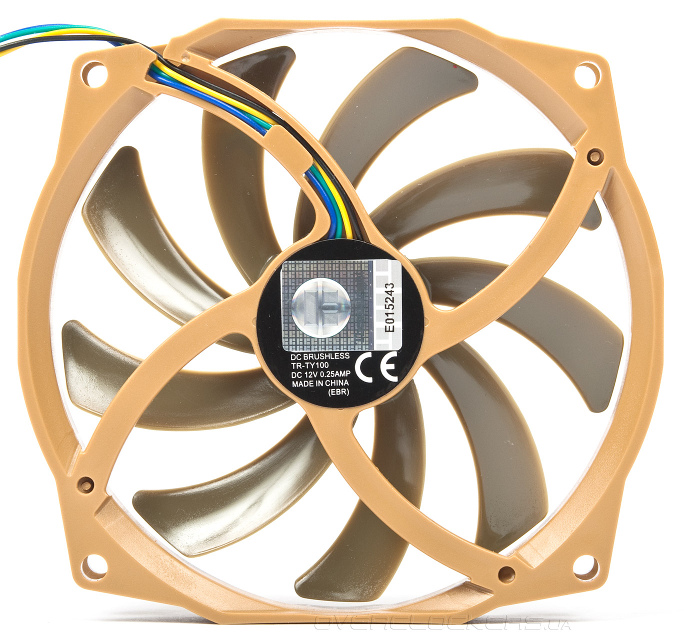 Вентилятор, имеющий маркировку TR-TY100, предназначен для работы от напряжения 12 В, при этом потребляет около 0,25 А. Касательно шума следует сказать, что характерный для данного типа подшипника звон сохраняется во всем диапазоне оборотов. На отрезке 900—1500 об/мин TR-TY100 является малошумным, при 1500—1800 уровень шума остается ниже среднего и лишь после 2100 об/мин начинает заметно урчать.