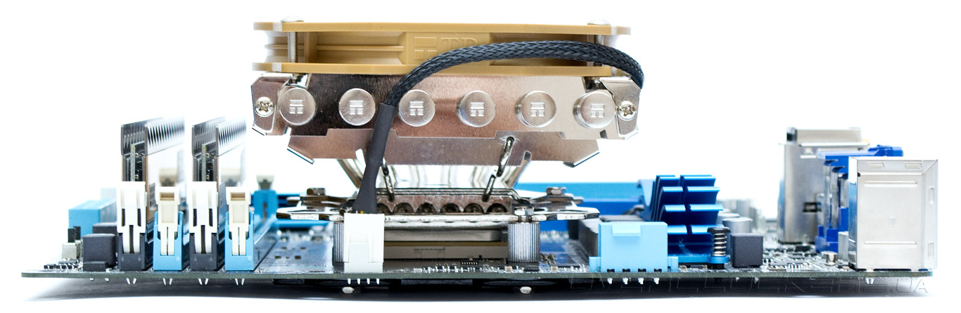 Стоит отметить что кулер не мешает оперативной памяти стандартной высоты, но даже небольшие радиаторы заставили нас переместить планки памяти во второй слот.