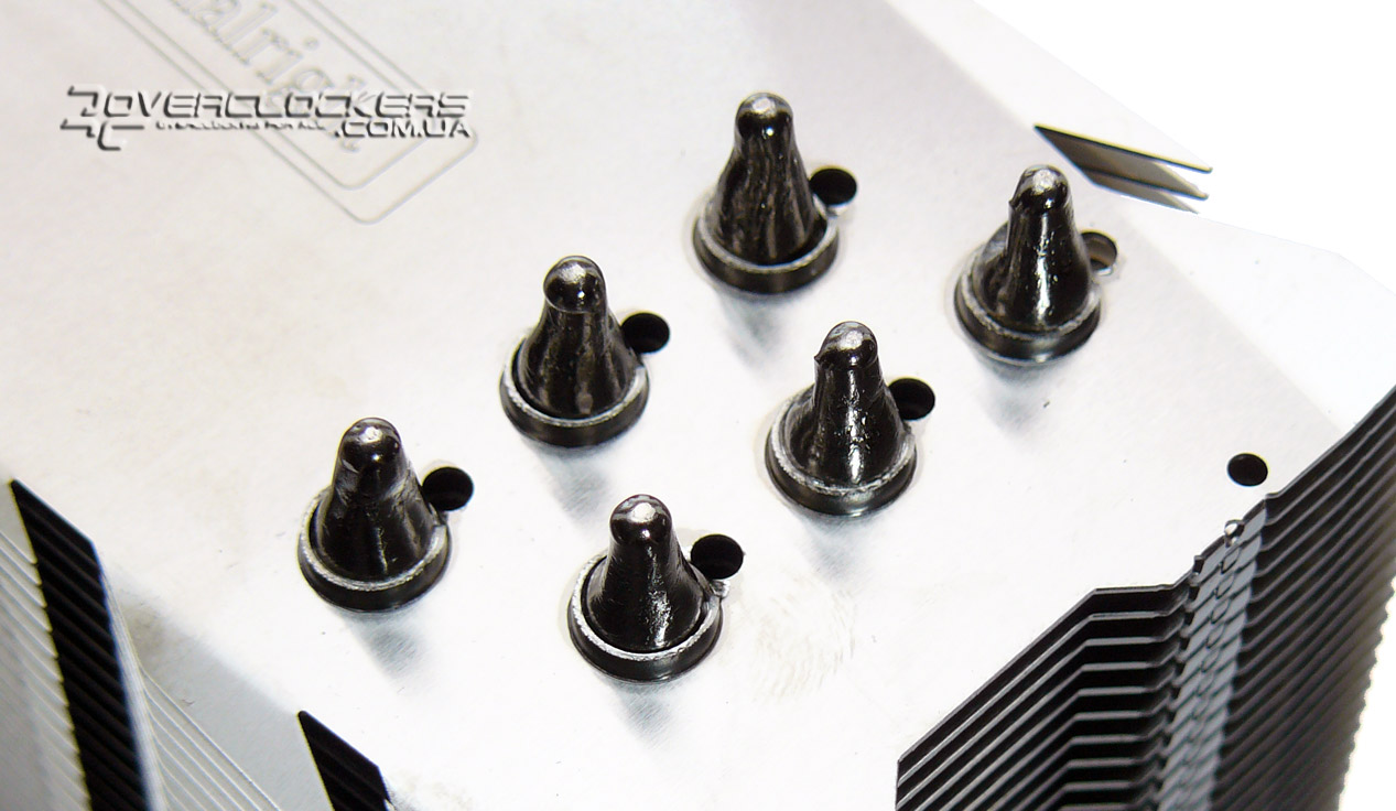 Конструктивно Venomous X ничем не отличается от Ultra-120 eXtreme — тот же кулер башенного типа с шестью тепловыми трубками и немного изогнутыми по краям ребрами.