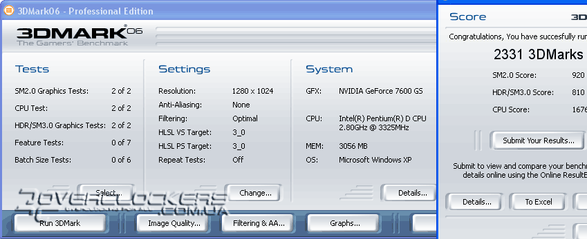 Включим мониторинг температуры и запустим 3DMark06. Результаты меня удовлетворили:
