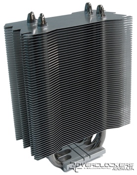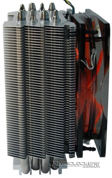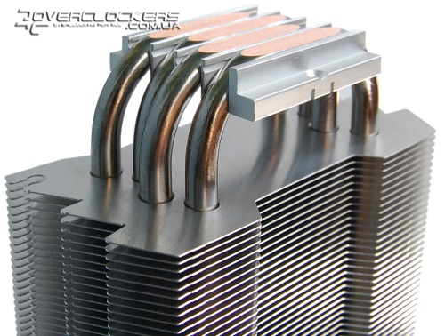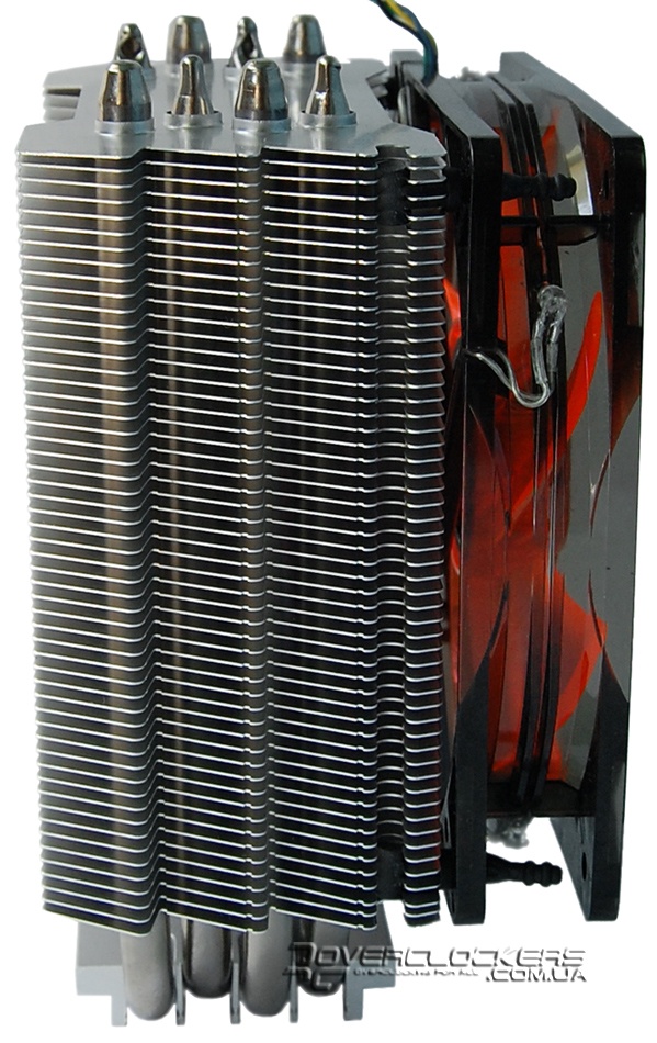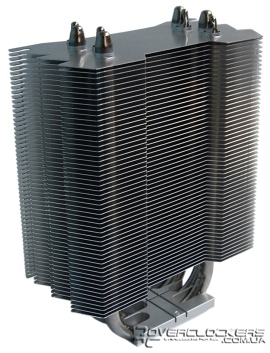 Конструкция башенного типа основана на четырех толстых 8-мм медных тепловых трубках, на которые нанизано 54 алюминиевых пластины. Габариты кулера 120x60x159 мм при весе в 660 грамм.