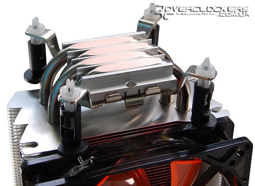 Система крепления у него довольно простая. На плате AMD он фиксируется стандартной клипсой с защелками, для Socket LGA 775 тоже используется стандартное крепление с пластиковыми защелками. Крепления для Socket 1366 не предусмотрено.