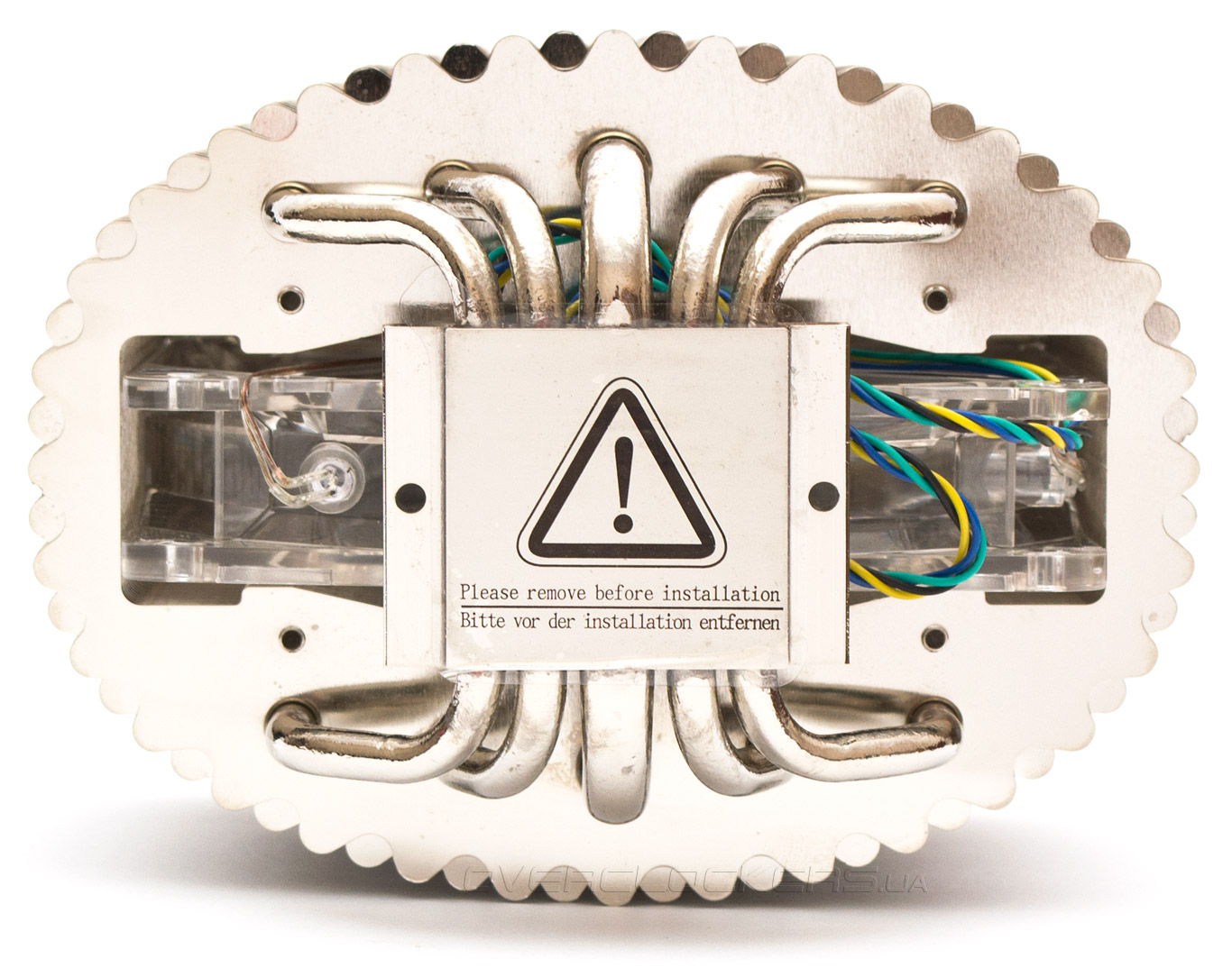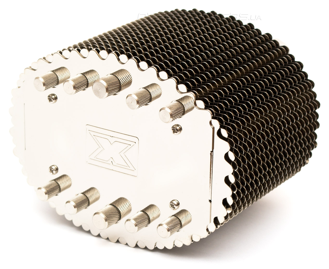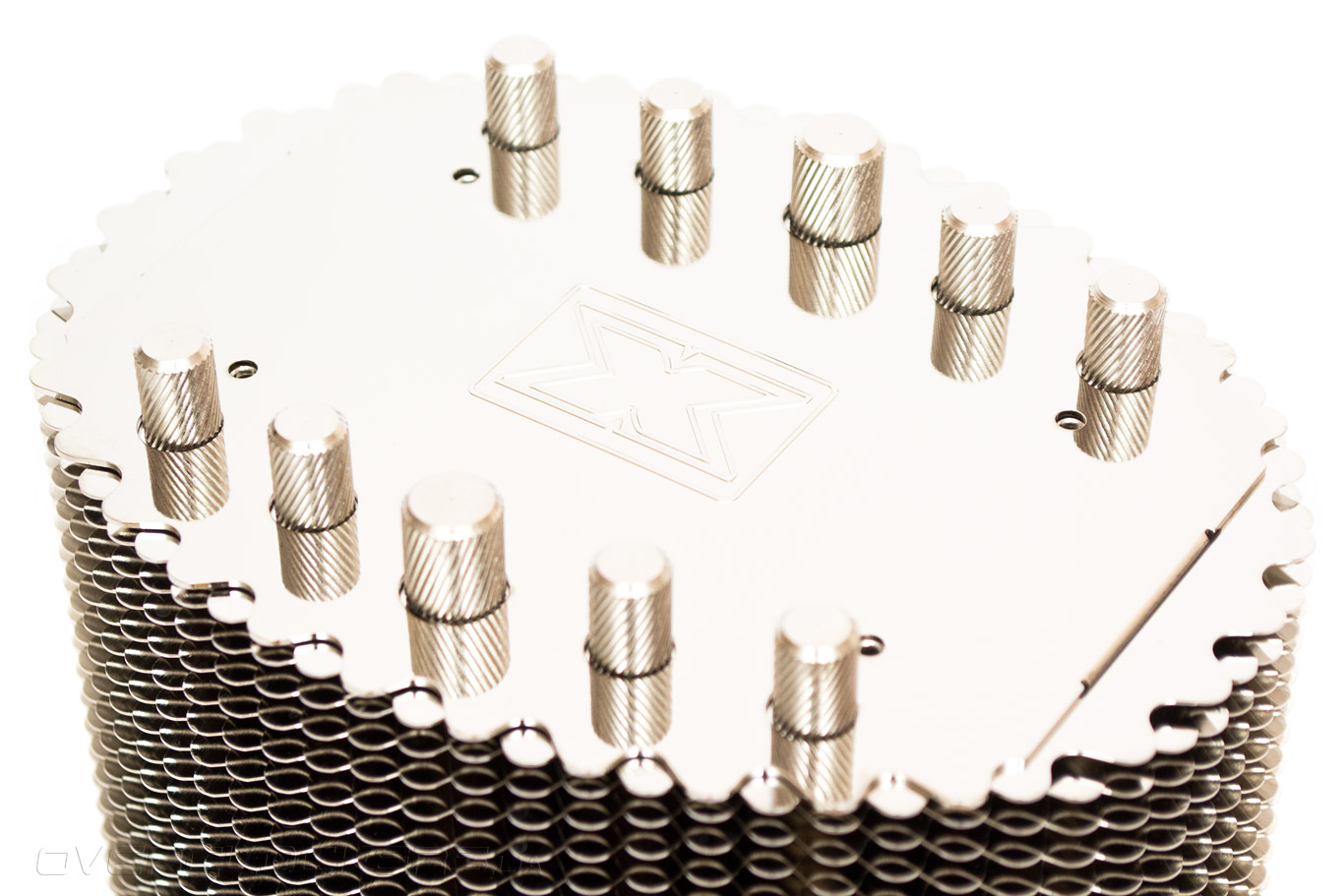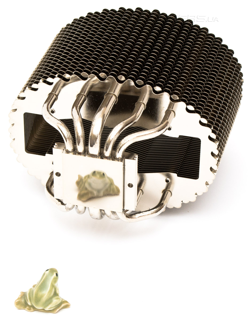 Грани волнисто зазубренных пластин, отражаясь друг в друге, создают иллюзию того, что кулер состоит из сплошной металлической чешуи. Общая площадь теплообмена радиаторных ребер близка к 7800 см².