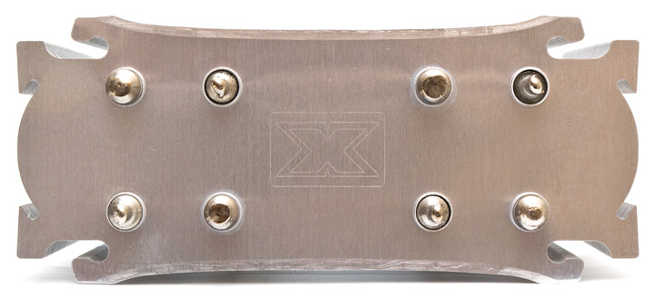 Равномерная расстановка тепловых трубок в виде квадрата предоставляет оптимальные возможности по прогреву всей площади радиаторных ребер. По центру виднеется едва заметный логотип компании в виде стилизованной буквы «Х».
