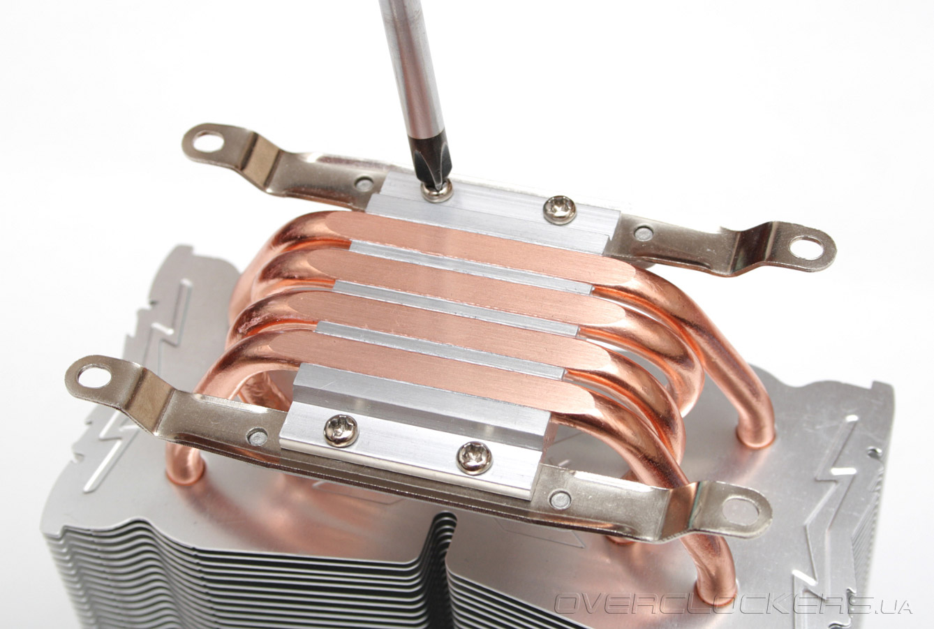 После — на посадочных местах в основании кулера закрепить две скобы из комплекта поставки.