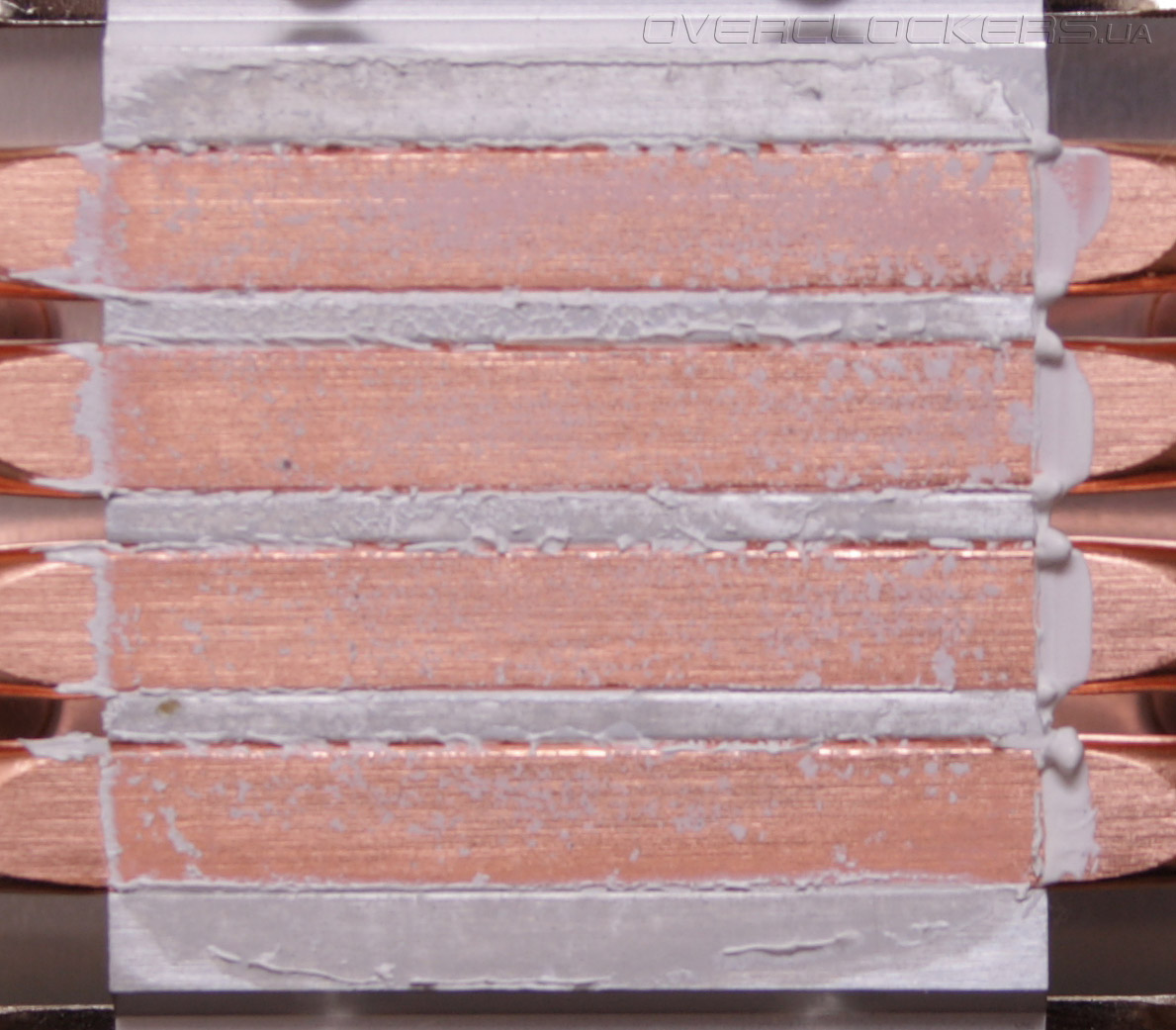 Также, стал заметно проще профиль алюминиевых пластин. А вот грамотное, нелинейное, расположение тепловых трубок в массиве ребер осталось на месте.