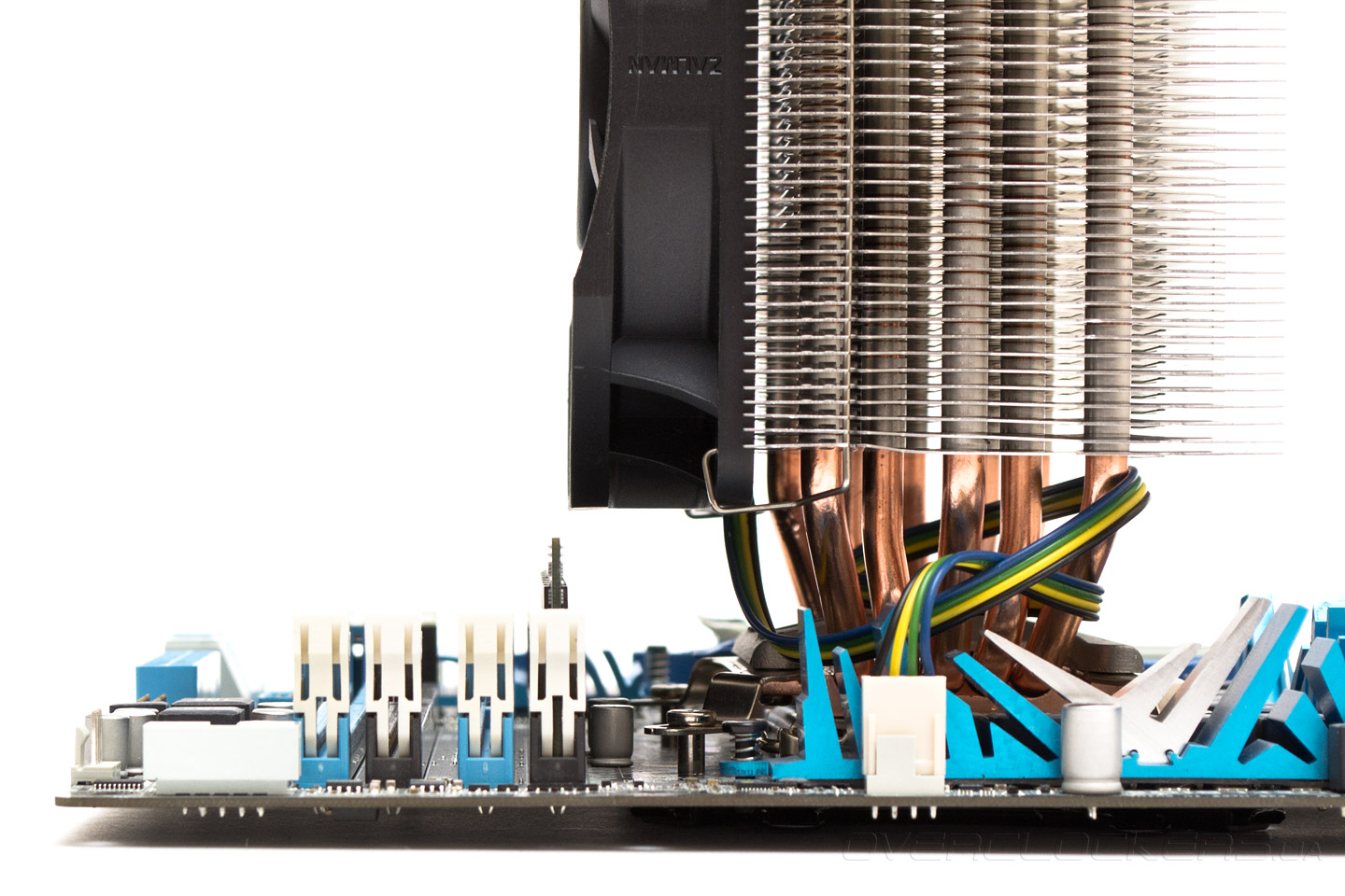 Первый от процессора слот оперативной памяти частично накрывается вентилятором, использование в нем планок с радиатором, превышающих 38 мм по высоте, невозможно. В горизонтальной ориентации кулера будет закрыто уже два слота.
